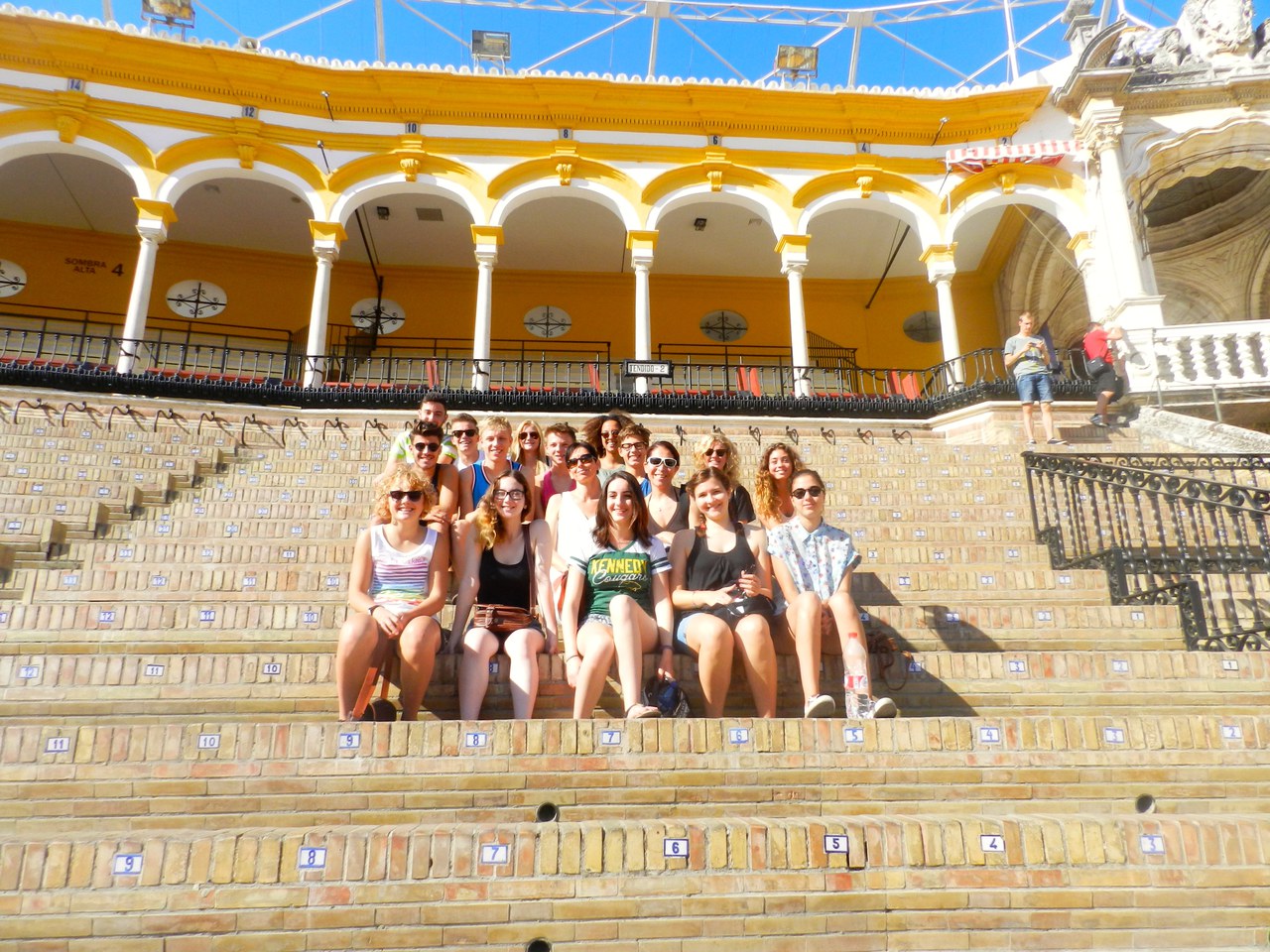 Am Dienstagmorgen waren wir um 8 Uhr wieder auf den Beinen und spazierten der Kathedrale Giralda entlang zu einem kleinen Bistro, wo wir gemütlich „zmörgelten“. Dann überliess Frau López Emil und Raphael die Verantwortung, die Klasse zur Plaza de España und von dort zur Plaza de Toros zu führen. Wir folgten den Schienen der kurzen und einzigen Tramlinie in Sevilla zum am Hotel Alfonso XIII (das berühmteste und exquisiteste Hotel in Sevilla). Bei der Plaza de España hielt Raphael seine Präsentation über diesen Platz. Dieser wurde 1929, wie auch das Hotel Alfonso XIII, der Plaza de Toros, und viele andere Gebäude im selben Stadtteil für die Iberisch-Amerikanische Exposition in Sevilla erbaut. Durch den Platz, der in der Form eines grossen Halbkreises erbaut wurde, zieht sich ein Kanal, der rundherum mit Keramikgeländern, Bänken und Laternen verziert ist. Nachdem wir die Plaza de España besucht hatten, gingen wir durch den Park zum Ufer des Guadalquivir. Wir gingen den Uferweg entlang, bis wir am Torre del Oro ankamen. Dort hielt Emil seinen Vortrag über die Real Maestranza (die Stierkampfarena), welche wir gleich darauf besuchten und dort an einer Führung teilnahmen. Als die Führung vorbei war, überquerten wir den Fluss auf einer schönen Brücke und besuchten die gepflegten Markthallen. Anschliessend gingen wir ins Museo de la Inquisición. Um 12.30 Uhr gingen wir in Gruppen in die Mittagspause und die Einkaufsstrasse unsicher machen. Nächster Treffpunkt war um 16.30 Uhr vor dem Hotel.