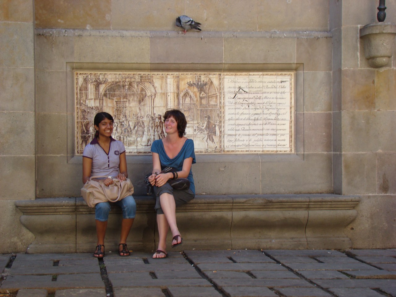 Das von den Klassen 4A, 4B und 4C meistbesuchte Stadtviertel Barcelonas, der Barrio Gótico, faszinierte uns durch die vielen Baudenkmäler der Gotik. Denkmäler eines Baustils, der sich mit Stilelementen der Renaissance und des Jugendstils vermischte und oft auch noch Resten romanischer Ursprungsbauten zum Vorschein brachte. Gleich nach unserer Ankunft in Barcelona begaben wir uns in Richtung Plaza San Jaume, wo unsere 3-stündige Führung durch den Barrio Gótico, El Born und La Ribera startete.