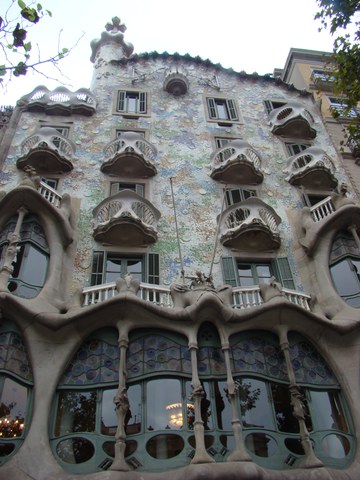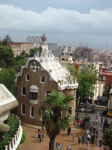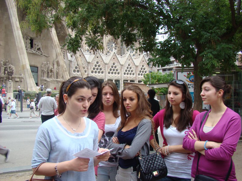 Nach den ersten Eindrücken in der Altstadt stand auf unserem Programm die Führung durch die Neustadt, auf katalanisch "el eixample", in Richtung Templo de la Sagrada Familia. Die Casa Batllo, die wir auf dem Weg zur Sagrada Familia bewundern konnten, betonte bereits das plastische und dekorative Konzept der Architektur Gaudís. So waren wir schon vorbereitet, als wir vor dem monumentalen Sakralbau "Sagrada Familia" standen und die Erläuterungen zur Nord- und Südfassade von den Spezialisten unserer Klasse zu hören bekamen. Der Parc Güell entzückte uns mit seinen Mosaiken und Häusern, die eine Führerin als „Märchenhäuser“ und „Hexenhaus von Hänsel und Gretel“ bezeichnete. Nach so vielen Eindrücken waren wir froh, im Parc Güell ein Plätzchen für eine kurze Pause zu finden.