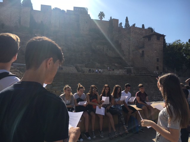 Wir versammelten uns am Bahnhof SBB, um gemeinsam den Zug nach Zürich zu nehmen. Mit anderthalb stündiger Verspätung startete die swiss-Maschine in Kloten. In Málaga angekommen, bezogen wir unsere Zimmer im „Hotel Sur“ und nach einer kurzen Verschnaufpause spazierten wir am Hafen und genossen den mediterranen Sonnenuntergang. Das gemeinsame Abendessen nahmen wir in einer kleinen „Tapas Bar“ ein. Den Rest des Abends verbrachten wir mit einer Erkundungstour durch die Innenstadt Málagas und konnten einen ersten Blick auf die beleuchtete Kathedrale werfen.
