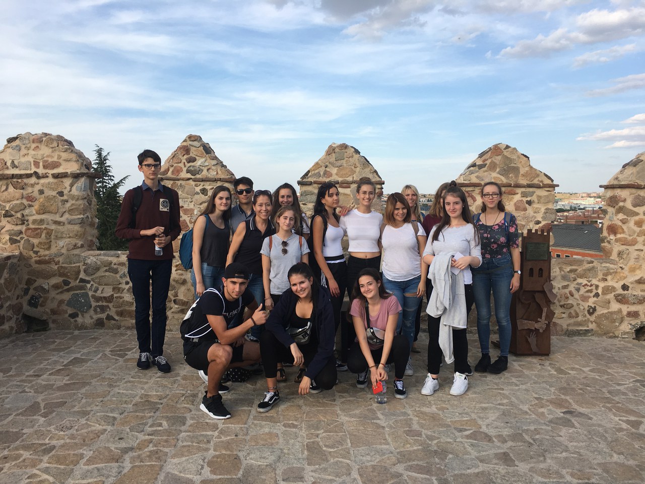Am Sonntag, trafen wir uns zum Abflug nach Madrid um 11.45 Uhr am Flughafen Basel. Die Stimmung war gut und alle freuten sich auf die bevorstehende Studienreise. Nach einem angenehmen Flug erreichten wir trotz ruppiger Landung um 16.00 Uhr Spaniens Hauptstadt. Am Flughafen erwartete uns bereits unser Busfahrer Jesús, der uns nach Ávila chauffierte. In Ávila stiegen wir gleich auf die imposante, 2,5 km lange und voll intakte romanische Stadtmauer und durften einem Vortrag über die Stadt beiwohnen. Anschliessend fuhr uns der Bus weiter in die Sierra de Gredos. Nach einer langen Fahrt kamen wir um 20.30 Uhr in Navarredonda de Gredos, einem Dorf mit 458 Einwohnern mitten in der Bergkette „Sierra de Gredos“, einem Teilgebirge des Kastilischen Scheidegebirges, an. Wir wohnten etwas ausserhalb des Dorfes, mitten in einem Pinienwald. Gleich nach der Ankunft bezogen wir unsere Zimmer und bald wurde uns das Abendessen serviert. Erschöpft von der langen Reise legten wir uns an diesem Tag zeitig schlafen.