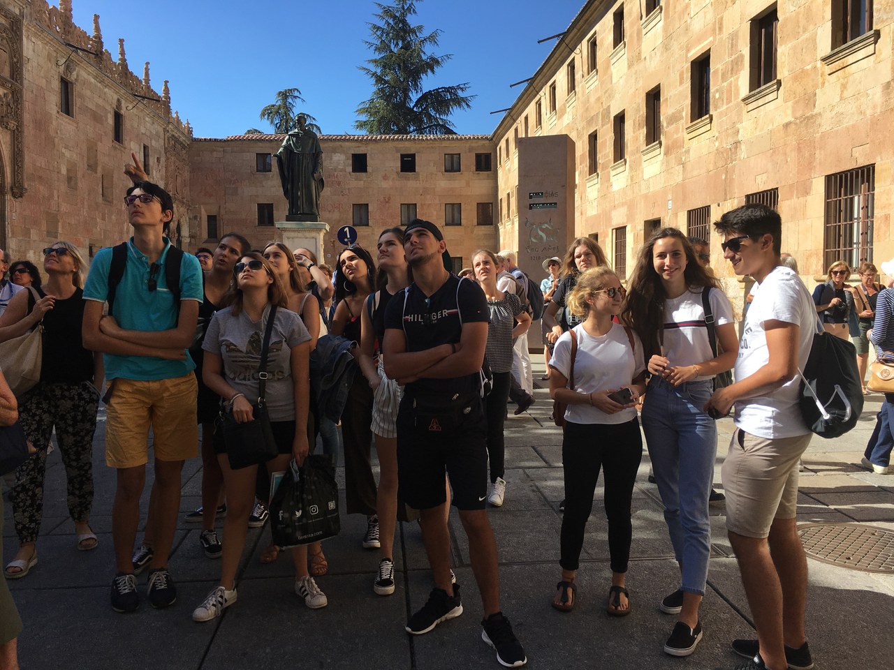 Je nach benötigtem Schönheitsschlaf standen wir zwischen 7.00 Uhr und 8.00 Uhr auf und trafen uns zum Frühstück. Um 10.00 Uhr trafen wir den nächsten netten Busfahrer, der ebenfalls Jesús hiess. Nadch zweistündiger Fahrt erreichten wir Salamanca. Wir schlenderten durch die schönen Gassen bis zur Plaza Mayor, wo uns Frau López kurz briefte. Wir hatten eine Stunde Zeit für Einkäufe und trafen uns anschliessend wieder in der Plaza Mayor zu einem ausgiebigen Mittagessen. Danach hielt Magali ihren Vortrag über die geschichtsträchtige Stadt am Fluss Tormes. Wir besichtigten die „Casa de las Conchas“, ein geschütztes Baudenkmal, welches heute eine öffentliche Bibliothek beherbergt und dessen Fassade mit über 300 Jakobsmuscheln als Symbol der Pilgerschaft nach Santiago de Compostela geschmückt ist. An der ältesten Universität Spaniens – und eine der ältesten Europas – angelangt, suchten wir alle nach dem versteckten Frosch an der Fassade, welcher der Überlieferung nach den Studierenden Glück bringen soll. Danach machten wir mit Audioguides eine Tour in der neuen Kathedrale von Salamanca. Bei der römischen Brücke mit den 26 Rundbögen am Tormes füllten wir in Gruppen einen Fragenbogen über unsere neuerworbenen Kenntnisse zu Salamanca aus. Einige von uns suchten, zum Teil erfolglos, Hilfe bei den vielen Passanten. Zurück in der Sierra de Gredos gab es Pizza und Salat. Alle waren vom langen, aber auch lehrreichen Tag sehr erschöpft.