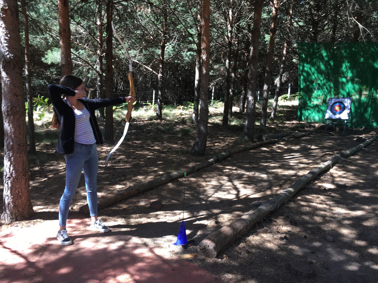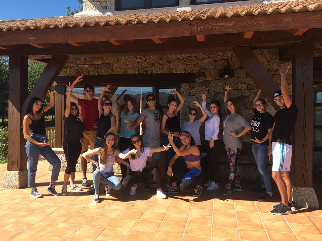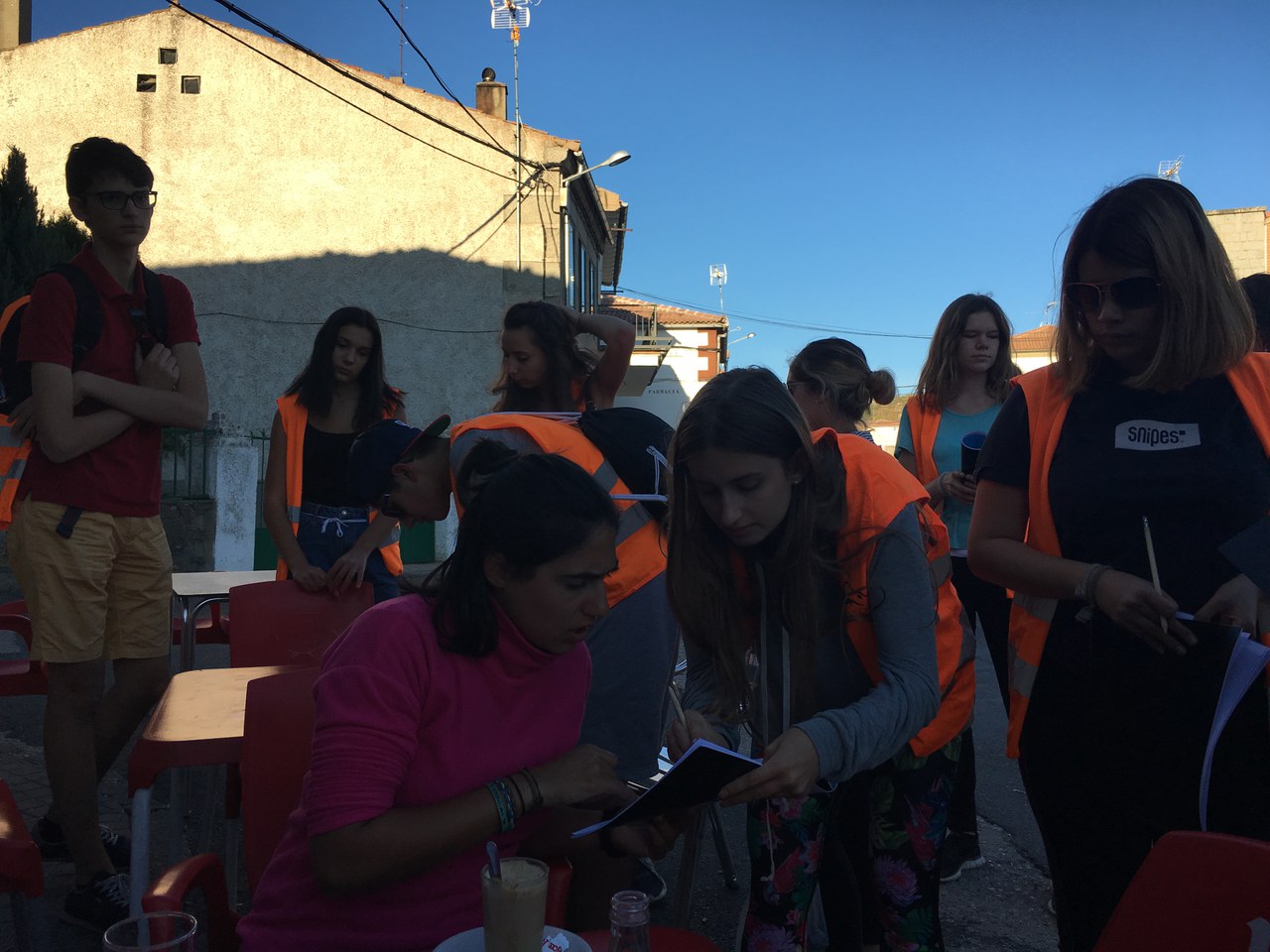 An diesem Tag war vorgesehen, dass wir uns im Camp und im zu Fuss erreichbaren Navarredonda de Gredos aufhalten. Nach dem gewohnten Frühstück in unserer kleinen Unterkunft erwartete uns in einem Nebengebäude des Zentrums ein kreativer Workshop. Obwohl beim ersten Gedanken, T-Shirts zu bemalen, nicht unbedingt unsere Lieblingsfreizeitbeschäftigung ist, hat es schliesslich doch Spass gemacht. Als nächstes stand Bogenschiessen auf dem Programm, wobei sich einige als ausserordentlich talentiert herausstellten. Es war für die meisten eine neue Erfahrung und schliesslich gelang es jedem, die Zielscheibe („diana“) zu treffen. Weiter ging es mit einem Orientierungslauf rund um das Gelände des Zentrums. Wir teilten uns in Gruppen auf und erarbeiteten mit Hilfe eines Kompasses („brújula“) einen Parcours, der später von einer anderen Gruppe absolviert werden musste. Und als ob dies nicht schon genug Aussenaktivität für einen Tag wäre, nahmen wir den zwanzigminütigen Marsch nach Naverredonda de Gredos unter die Füsse, um dort zu einem weiteren Orientierungslauf anzutreten. Mit den orangefarbenen Warnwesten, die wir aus Sicherheitsgründen anziehen mussten, sahen wir den Basler Kindergartenkindern etwas ähnlich. Diesmal gestaltete sich die Orientierung allerdings etwas schwieriger, jedoch war die Aktivität im kleinen Dörfchen mit seinen alten Häusern, verlassenen Strassen und hilfsbereiten Einwohnern ein guter Tagesabschluss. Und als die Sonne schon langsam unterging, machten wir uns wieder auf den Heimweg.