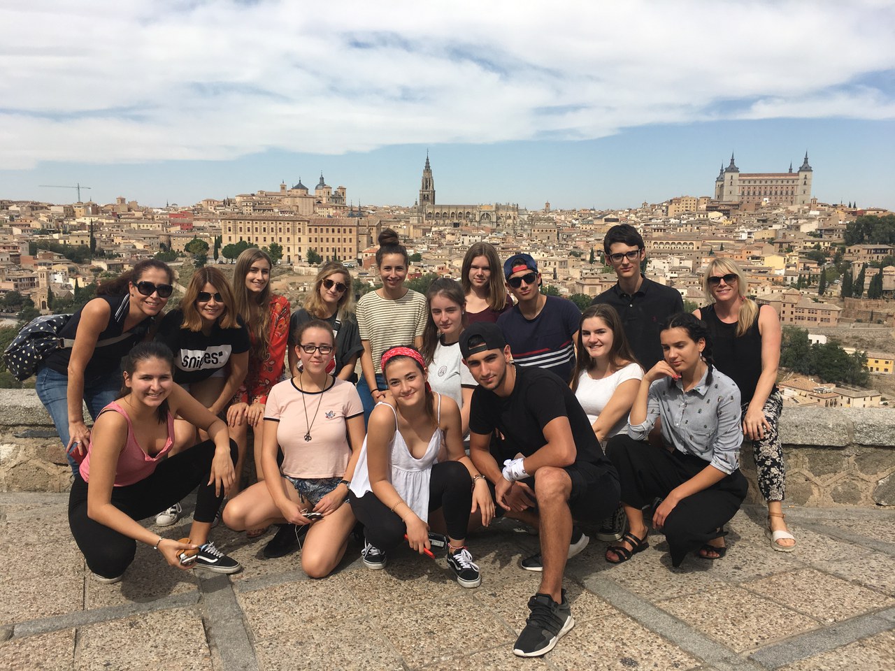 Nach dem zeitigen Frühstück packten wir alle unsere Sachen und stiegen um 9 Uhr in den Bus. Auf der 2-stündigen, ruhigen Fahrt nach Toledo schliefen alle. In dieser historischen Metropole sahen wir viele Sehenswürdigkeiten wie zum Beispiel die Kirche „El Cristo de la Luz“, welche ehemals eine Moschee gewesen war, und den berühmten Alcázar, eine Festung, welche über viele Jahrhunderte die Geschichte Spaniens mitgeprägt hat. Vor der eindrücklichen Primatskathedrale hielt eine Mitschülerin einen Vortrag über die ehemalige Hauptstadt Spaniens. Die Synagoge „El Tránsito“ und die Kirche „Santa María la Blanca“, ursprünglich auch eine Synagoge, besuchten wir anschliessend. Nach einem Zwischenhalt und ein paar Fotos ging es weiter nach Madrid, worauf sich schon alle sehr freuten. In der Hauptstadt angekommen, bezogen wir die Zimmer in unserem Hostel und gingen danach zusammen zur Puerta del Sol, vorbei an der berühmten „Churrería San Ginés“ und dem „Mercado San Miguel“ bis zur Almudena-Kathedrale und dem Palacio Real, wo eine Schülerin ihren Vortrag hielt. So verschafften wir uns einen Überblick über die Innenstadt von Madrid. Wir teilten uns in Gruppen auf und durften den Rest des Abends selbstständig gestalten. Das Abendessen mussten wir selber auf Spanisch bestellen, was uns allen gut gelang.