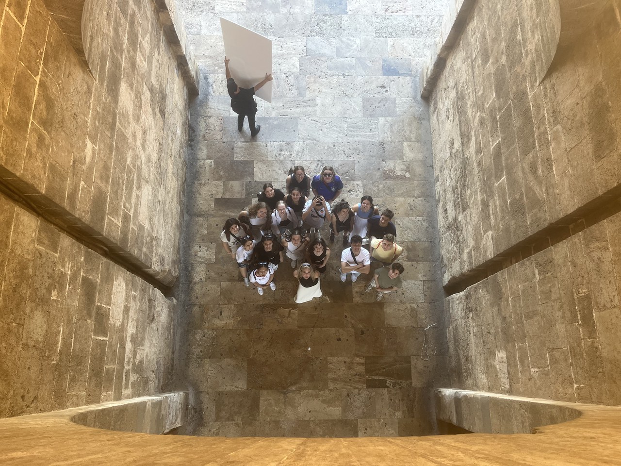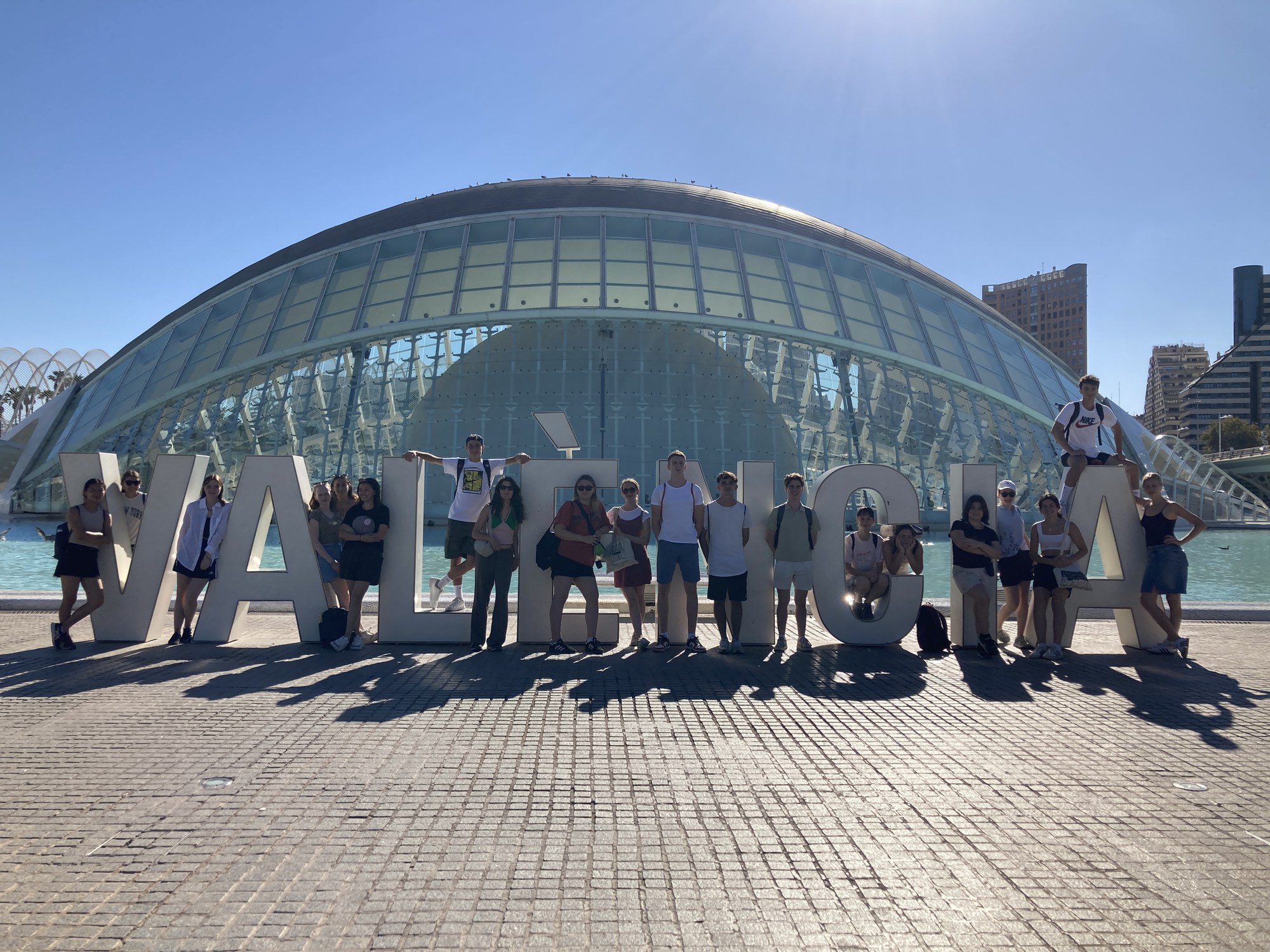 Nach einem traditionellen Frühstück, einer «tostada con aceite y tomate» und einem frisch gepressten Orangensaft, starteten wir in den ersten Tag in Valencia. Zur Vorbereitung der Reise mussten wir in Gruppen Podcasts über ein frei gewähltes Thema, mit Bezug auf Valencia, aufnehmen. Der erste Podcast erzählte uns die Geschichte der Torre Micalet und der Catedral, beide befinden sich auf der Plaza de la Reina. Nach einer von Aline und Hannah vorbereiteten Aktivität bestiegen wir die 207 Treppenstufen auf den Turm und genossen die schöne Aussicht über Valencia. Nach einem Besuch der Catedral begannen wir die mit der Erkundung der Stadt. Wir spazierten durch El Carmen und assen dann im Mercado Central zu Mittag. Über diesen durften wir noch einige interessante Fakten und Legenden im nächsten Podcast hören. In der grossen Halle des Marktes traf man auf viele verschiedene Stände mit Fleisch, Fisch, frischen Früchten und Spezialitäten aus Valencia. Am Nachmittag versammelten wir uns vor unserem Hostal zu einer Führung durch die Lonja de la Seda. Dann ging es schon weiter. Betty und Linda führten uns mit ihrem Podcast durch die Altstadt, dabei legten wir eine kleine Pause in der Horchatería Santa Catalina ein. Dort probierten wir das süsse, spanische Getränk aus Erdmandeln Horchata und das traditionelle Gebäck Fartón. Gestärkt schlenderten wir weiter durch die Stadt und stiegen zum Abschluss auf die Torres del Serrano. Schliesslich beendeten wir den Tag mit einem gemeinsamen Abendessen im Mercado de la Imprenta. Es war ein langer, aber spannender und schöner erster Tag.