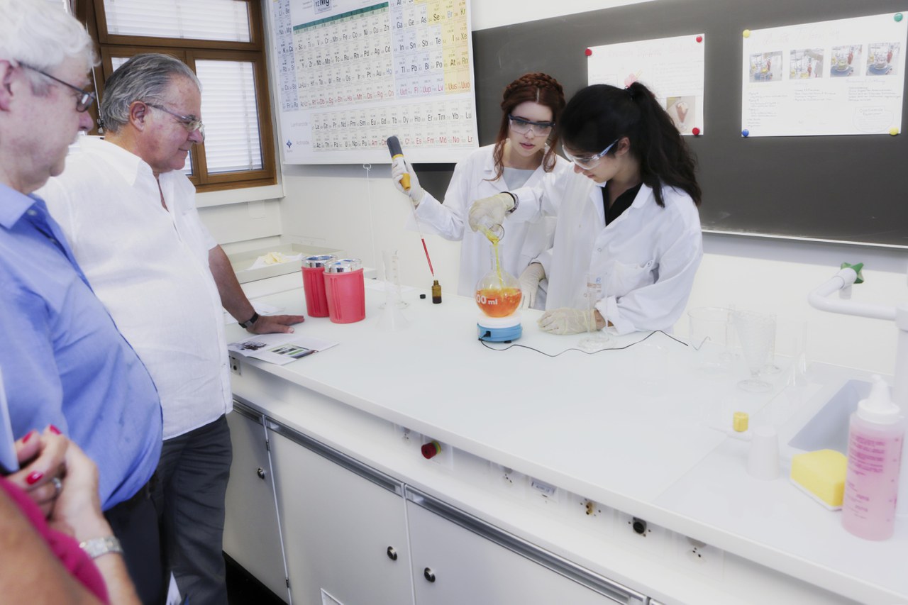 Regierungsräte Dr. Eymann und Dr. Wessels sowie Rektor Dr. Krieger am Einweihungsfest 2016 nach 3 Jahren Umbau