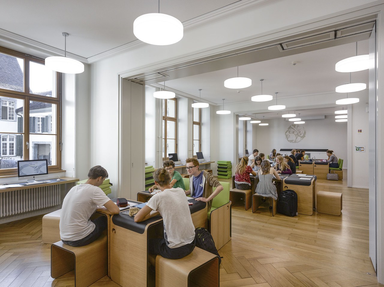 GM-Lernzentrum mit neuem Mobiliar, im Partizipationsprojekt mit der Schülerschaft entwickelt