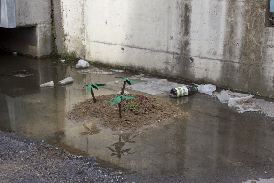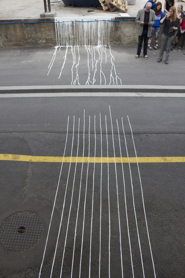 „Die LaP2-Woche war eine sehr gute Gelegenheit, sich intensiv mit einem gestalterischen Projekt zu beschäftigen und sich damit täglich aufs Neue mit Gestaltung zu befassen. Die Umgebung war ideal. Das Dreispitzareal hat uns so viele interessante Orte geboten, dass es uns nicht leicht gefallen ist einen dieser Orte auszuwählen. Unser Ort war ein kleiner Spalt im Boden einer ca. einmeterhohen Tribüne. Dieser ist uns erst beim zweiten Mal genauer hinschauen aufgefallen. Er war geeignet, weil er noch sehr unverändert war und deshalb Platz für beinahe jede künstlerische Idee bereithielt. ...“