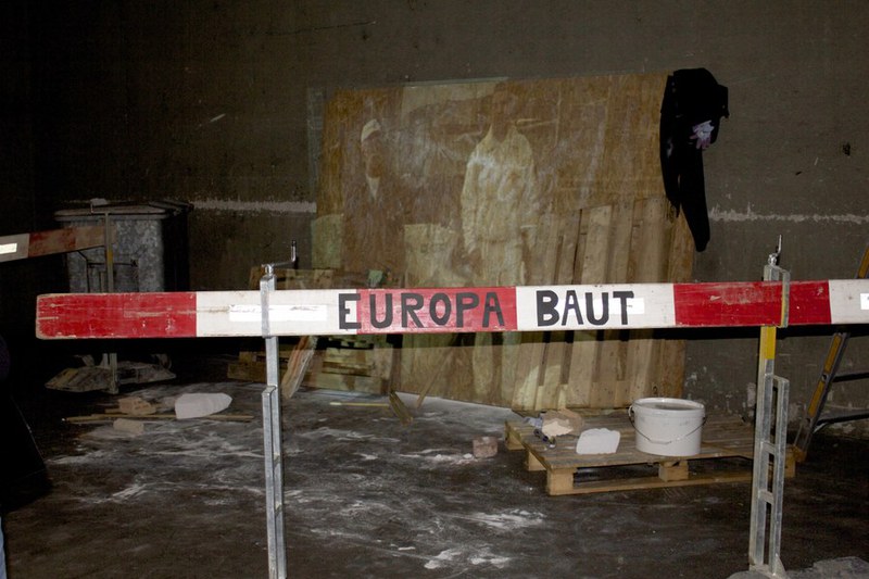 „Unsere Idee bestand darin, die Menschen, welche auf dem Dreispitz-Areal arbeiteten, zu interviewen. Diese Interviews projizierten wir dann auf eine Baustelle, die wir in einem düsteren Gang aufgebaut haben. Somit wollten wir nicht nur den Gang verändern, sondern auch zeigen, dass sogar in solch einem Gang die Arbeit der Bauarbeiter steckt. ...“