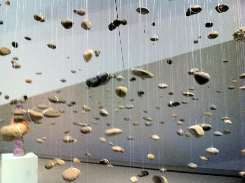 Als ich die Ausstellung betreten habe, kam sie mir im ersten Moment sehr leer vor. Es gab einige Vitrinen und Statuen, sonst aber nur dünne Fäden, an denen Steine hängen. Der erste Gedanke war: was soll spannend sein an Steinen, die in der Luft hängen? Bei genauerer Betrachtung fand ich trotz dieser Schlichtheit Interesse an den verschiedenen Gebilden und Ausstellungsobjekten. Die Installationen waren eindrücklich, denn durch das Schweben und die Bewegung wurde den Steinen den Eindruck von Fliessendem und Schwerelosem verliehen.