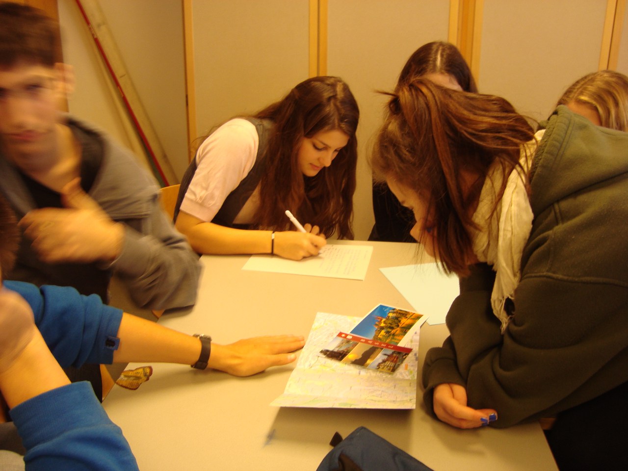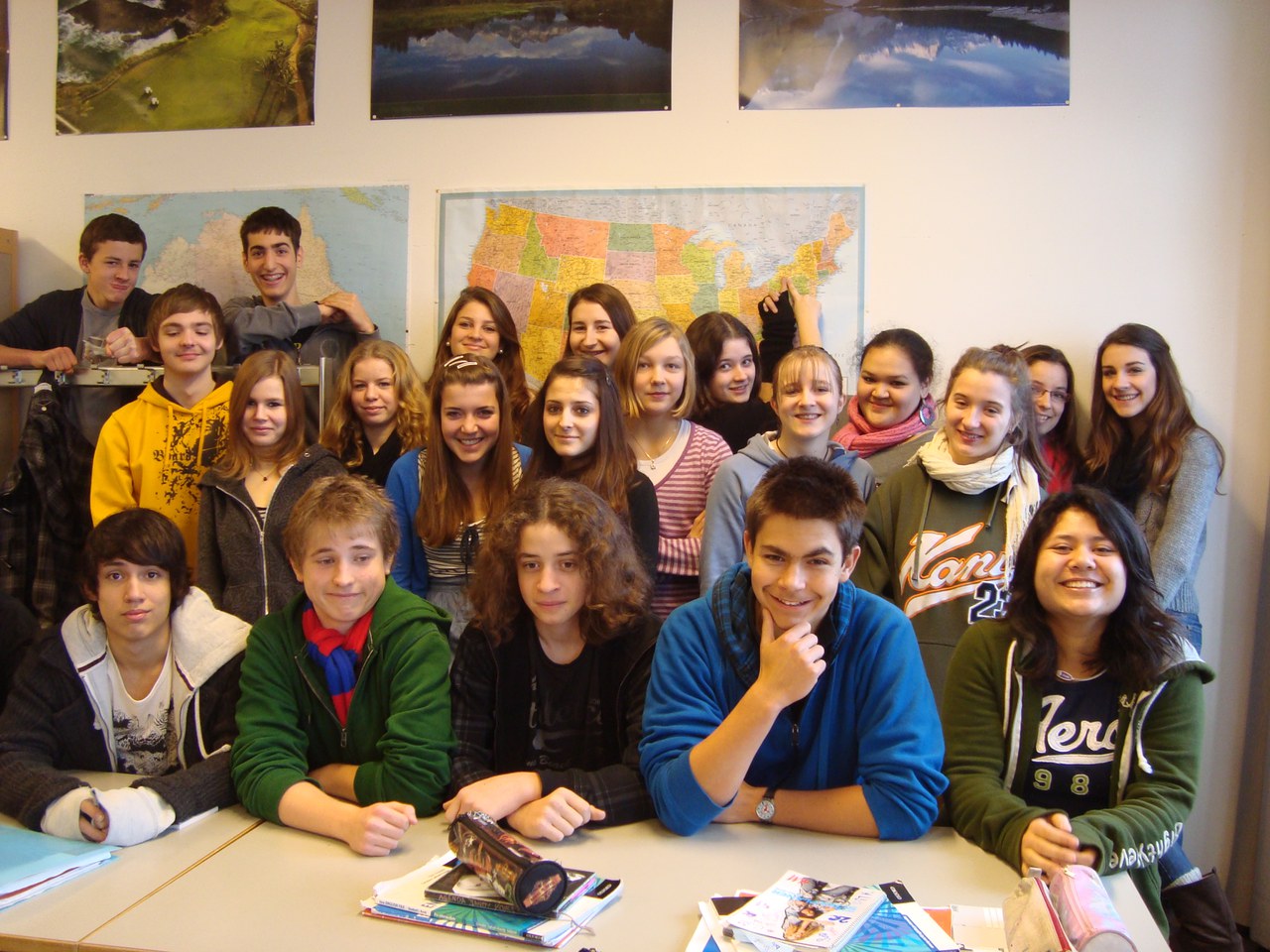 Class 2C are exchanging e-mails with two classes from Portville and Franklinville Central School (NY). One of the classes is learning German, the other one is learning French. On the pictures the students are writing the first letters, presenting our class, to their new pen pals. Now we just write e-mails, which is much faster, and we hear regularly from each other.