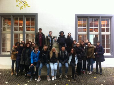On Tuesday morning, 15th November 2016, the English 'Schwerpunktfach' of Ms Whitebread went to the English Seminar of the University of Basel. Without any expectations of what awaited us inside the walls of number 6 on Nadelberg, we entered through the big wooden door. It soon became clear why the house has the name "Schönes Haus". In the cobbled courtyard with the big tree and fountain we were welcomed by Dr. Catherine Diedrich, representing the linguistics department and research assistant Daniela Keller from the literature department.