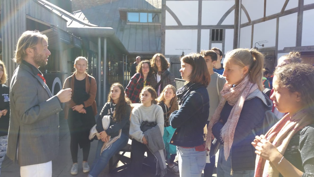 The Day began with a visit to Westminster Abbey, where we passed the resting places of some of the most famous British scientists, poets, politicians and monarchs. Jennifer and Antonio`s presentation about the Abbey and Elisabeth I had already highlighted some of the most important history of this ancient place, but we were surprised to find more familiar names like those of Stephen Hawkins and Charles Dickens inside, too. From Westminster, we hopped on and off our tour bus to see places like 10 Downing Street, Picadilly Circus and Buckingham Palace and then finally (through ridiculous traffic, of course) found our way back together at Dr. Samuel Johnson`s House. After our workshop about his English dictionary, some couldn`t resist one final costume session. In the last presentation of the trip, Aimee and Annika solved some of Sherlock Holmes` mysteries for us before our final event of the day took us to the Globe to see Shakespeare`s A Winter`s Tale. As actors and audience broke into bizzare song and dance at the end of the play ... we were left wondering whether Shakespeare really was as high-brow as we had expected!