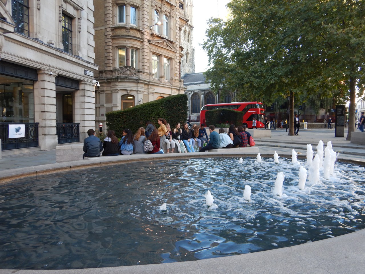 We all met at 10 o’clock in the morning at Basel-Mulhouse Airport and after a smooth flight, got our first aerial glimpse of London sprawling out from the winding Thames river. The ground view of London, however, would have to wait. First on the itinerary was a bus ride to rainy Avebury, where we could visit the ancient Stone Circle and had a tour inside the Medieval Manor: a 14th-century moated house in Kent. This is where Oscar held his presentation about King Henry VIII and the rest of us were able to watch comfortably from a medieval four-poster bed before moving through the different history-themed rooms of the house. After rainy encounters with sheep amongst the ancient stone circles, we were ready to dry off in the coach again and get to our first accommodation in the small city Bath. Braving the rain and unexpected cold, we set out again on our first tour, visiting the homes of the famous English novelist, Jane Austen, about whom Paula and Francesca held their presentation. We even met quite a few “Jane Austens” in the street because it was the Jane Austen Festival, where people dress up and attend balls in traditional fashion to celebrate the author`s life and works. We, however, were now ready for warm comfort food and went to Domino’s pizza to indulge ourselves.