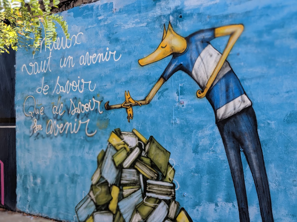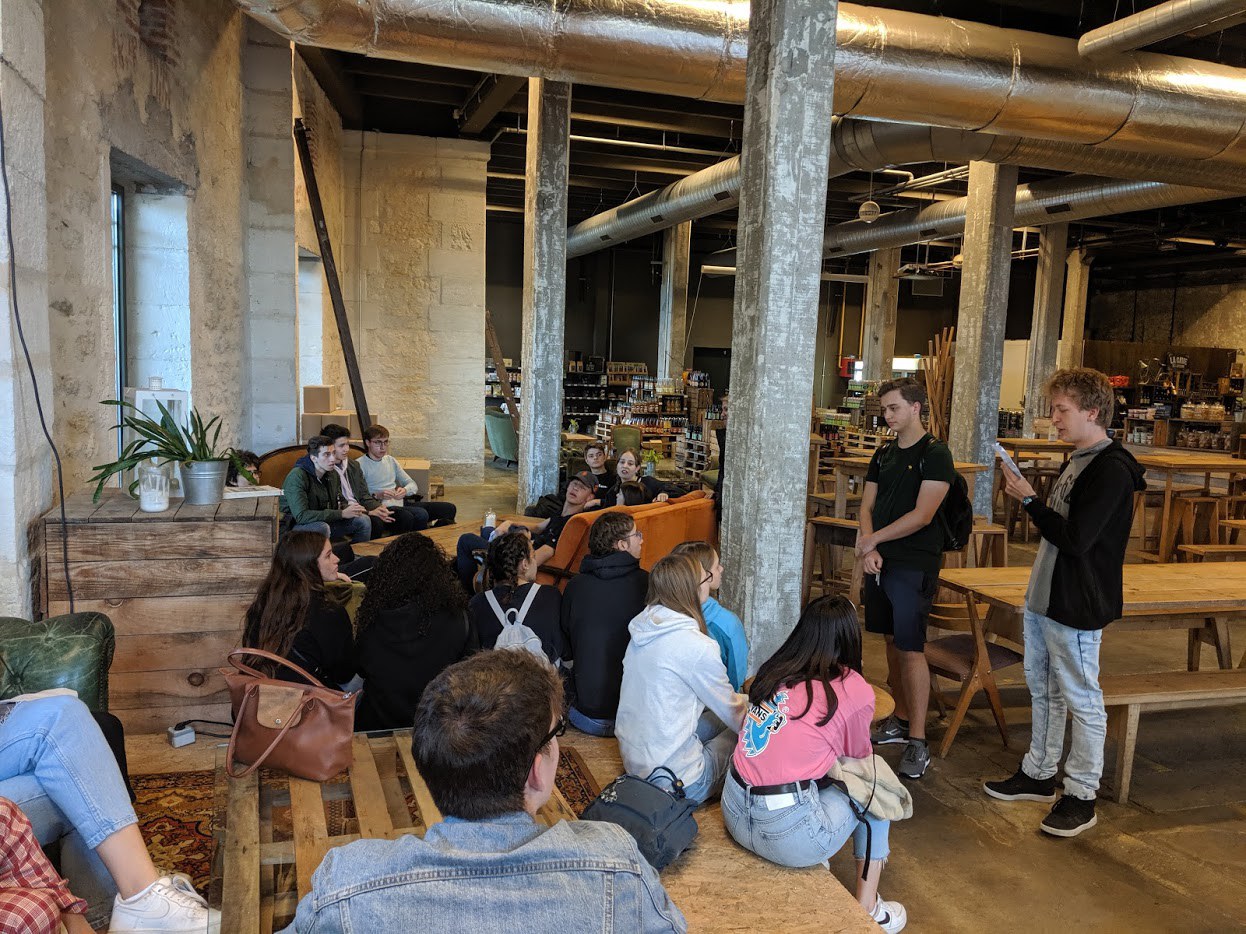 Einen starken Kontrast dazu bildete das alternative Quartier Darwin an der Rive Droite, das wir dann besuchten. Auf der rund 20‘000 m2 grossen Fläche des Areals einer bis 2004 militärisch genutzten Kaserne ist hier ein nachhaltig ausgerichtetes Ökoquartier errichtet worden mit unterschiedlichsten Anlaufstellen für Essen und Trinken, Street Art, Skatehalle, Nutzgarten, Co-Working Spaces und Unternehmen, die sich für soziale Verantwortung stark machen.