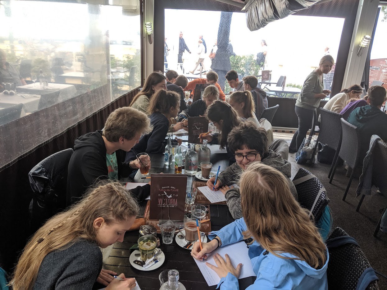 An unserem letzten Studienreisetag besuchten wir das Naturhistorische Museum, welches eine grosse Zahl spannender Tiere ausstellte. Viel Spass bereitetet uns allen am Nachmittag die Aufgabe, ein Foto mit einem von Bordeaux‘ zahlreichen Monumenten zu schiessen. Nach dem Check-in auf dem Flughafen hielten wir die letzten schönsten Momente der Reise in einem Tagebucheintrag fest. Müde und erschöpft kamen wir zu später Stunde wieder in Basel an.