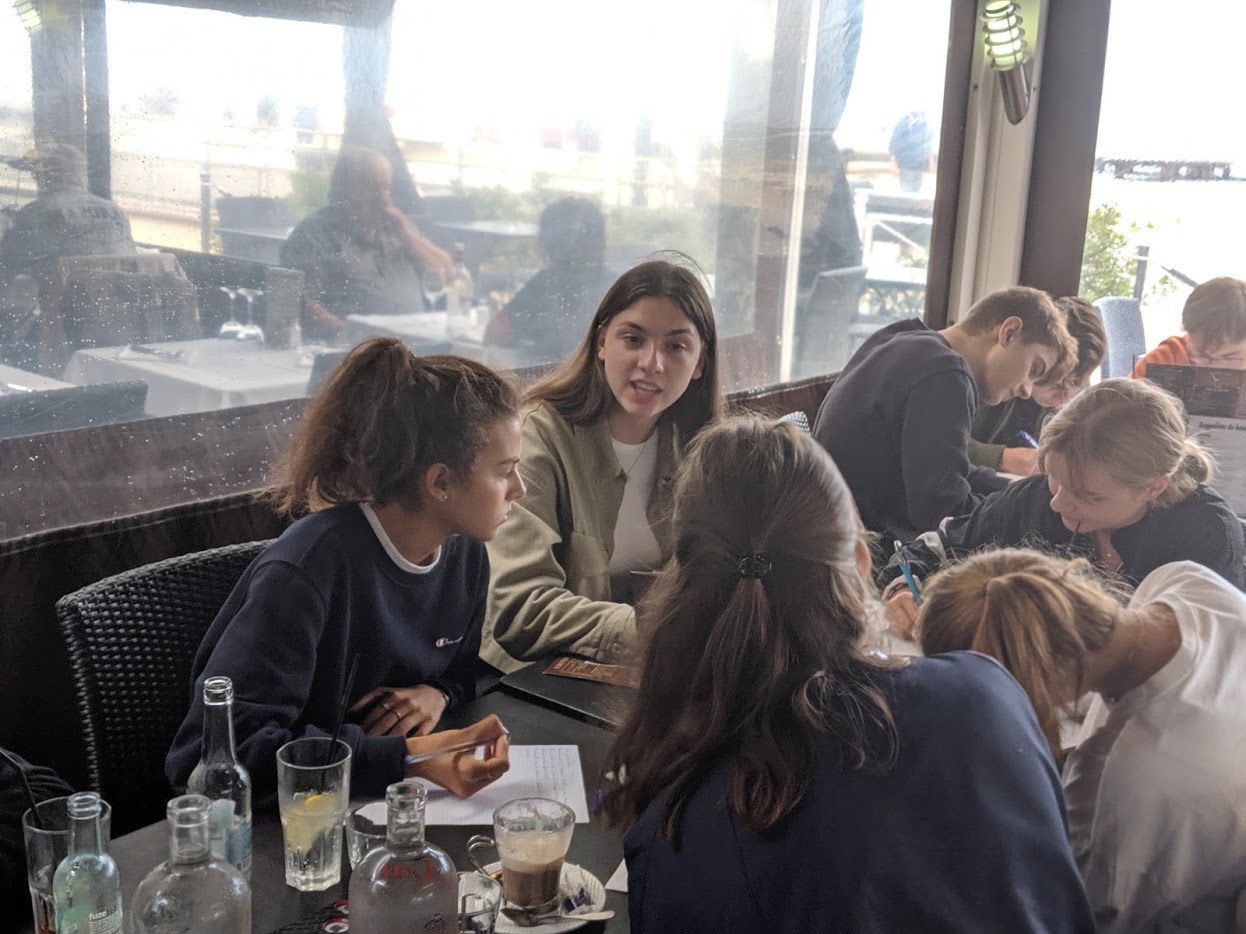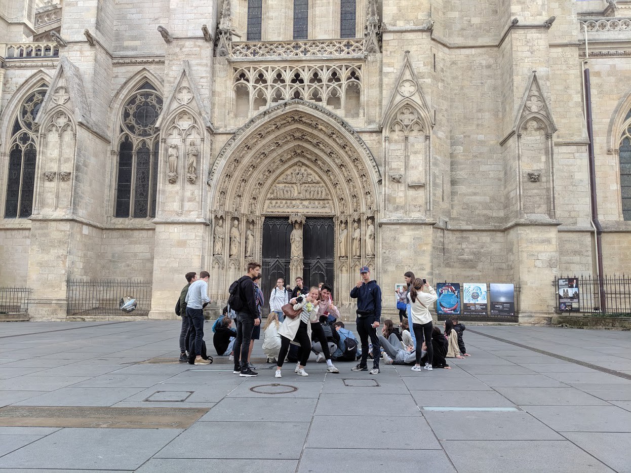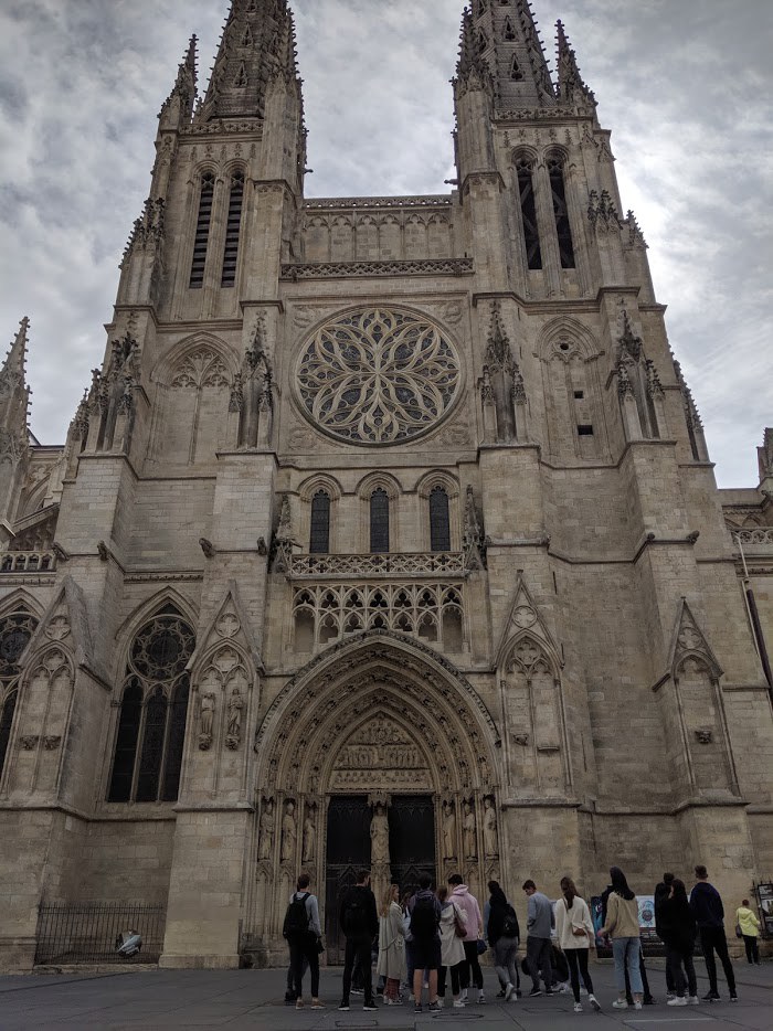 Hier machten wir alle begeistert Fotos und unternahmen eine Bootsfahrt auf der Garonne, um zum Museum ‚Cité du Vin‘ zu gelangen, das die Stadt gleichzeitig als zeitgenössisches Monument schmückt und auf dem Ranking von National Geographic auf Platz 7 der weltweit besten Museen steht. Nach einer kleinen Stärkung im Museums-Restaurant spazierten wir durch die Altstadt ins Quartier St. Michel. Während der ganzen Reise konnten wir Schülerinnen und Schüler uns durch die kurzen Vorträge, die wir hielten, vertiefte Einblicke in die kulturellen und historischen Themen der Reise geben.