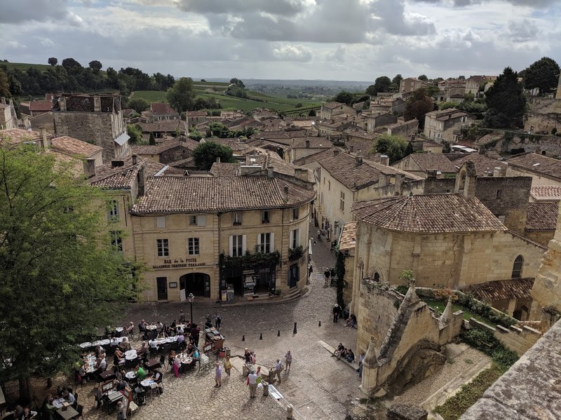 Die Bahn brachte uns dann am Donnerstag ins berühmte Dorf St.-Émilion, welches mit seinem umliegenden gleichnamigen Weinbaugebiet 1999 von der UNESCO zum Weinkulturerbe erklärt wurde. Dort besichtigten wir die Felsenkirche, deren Innenraum ganz aus dem Kalksteinfelsen herausgehauen wurde. In einem Nebenraum ist eine Gruft zu sehen, in der die Gebeine der Toten bestattet wurden. In einer weiteren Felshöhle nebenan wird die Grotte des Einsiedlers Emilion gezeigt.