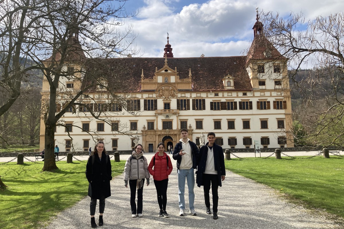 We were woken up at 5:30am for breakfast and shortly after arrived in Graz. Upon arrival in the hostel, and waiting a small eternity for breakfast, we got to sightseeing. After exploring the inner city for an hour, we set off to go see the Schlossberg. There we faced our first challenge of the trip: scaling the mountain in order to reach the top. The ‘Museum for Geschichte’ was the next cultural stop and we saw an exhibition on National Socialism in the Steiermark. Hungry from all the walking, and tired from the train, we took a break to have lunch and then got on the tram to Schloss Eggenberg, where a riveting guided tour of the UNESCO World Heritage site, awaited us. The Kunstmuseum Graz was the last cultural site we visited before we returned to the hostel to freshen up before dinner.
