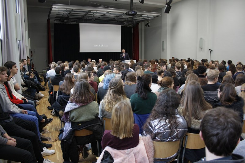 Jeweils zum Holocaust-Gedenktag lädt die Schule einen Gastreferenten ein, der zu diesem Thema spricht. Ein Grossteil der Maturklassen ist dann in der Aula dazu eingeladen, dieses Referat zu hören und des Holocausts zu gedenken.
