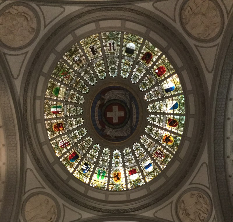 The walls and ceiling are lavishly decorated with the coats of arms of each canton in stained glass. The most important trades and professions of the late 1800s, when the “Bundeshaus” was built, are also artistically represented.