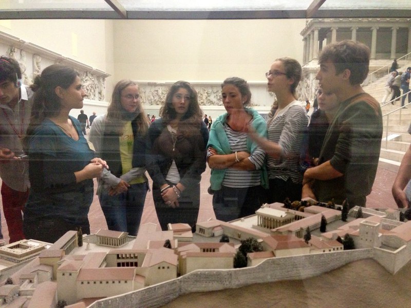 Auch innen herrscht der Geist des 19. Jahrhunderts. Der Zeusaltar der kleinasiatischen Stadt Pergamon ist komplett rekonstruiert zu besichtigen. Dass der Altar in Berlin zu sehen ist, verdankt er den guten Beziehungen zwischen Preussen und dem Osmanischen Reich, zu dem Pergamon damals gehörte. Dies und mehr wurde uns von einer sympathischen Griechin mit dem schönen Namen Eftychia erklärt, die einen Teil ihres Archäologiestudiums in Basel absolviert hatte, und uns nun durch die unglaublichen Ausstellungsräume führte.