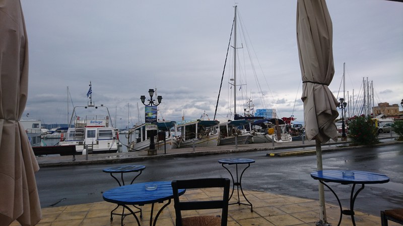 «Zeus hyei» heisst es so schön, «Zeus lässt regnen» – und wir sind gezwungen, die regenfreien Zeitfenster zu finden. Was aber nicht immer gelingt. Wir unternehmen unseren Ausflug zur Insel Ägina, wo die Anfahrt für Schiffe wegen der verborgenen Felsen und hervorragenden Klippen schon in der Antike Mühe machte. War es aus Furcht vor Seeräubern, dass Aiakos, der Sohn des Zeus und der Aigina, der Tochter des Flussgottes Asopos, die Topographie so gestaltete? Wir, keine Seeräuber, konnten problemlos anlegen und gelangten ebenso problemlos zum Aphaia-Tempel, welcher wohl von den Griechen nach dem Sieg über die Perser in der Schlacht bei der nahen Insel Salamis (bei der die Aigineten in letzter Stunde die Seite weg von den Persern zu den Griechen wechselten – unglaublich und zugleich verrückt, was die sich erlaubten!?!) gestiftet und erbaut worden ist. Zurück im Hafenstädtchen Ägina essen wir in einem schmucken Estiatorio frischen, hervorragend zubereiteten Fisch und lassen so das unfreundliche Wetter vergessen. Der Regen hatte aufgehört.