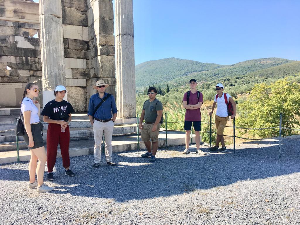 Die Fahrt nach Pylos, einem Städtchen mit gut 5’000 Einwohnern und einer bewegten Geschichte (Schlacht von Navarino!), brachten wir am Vortag hinter uns und besuchen heute das antike Messene, die ehemalige Hauptstadt der Landschaft Messenien. Durch die weiten Olivenhaine der Ortschaft Kalamata (die allen Oliven-Öl-Liebhabern hoffentlich bekannt ist) geht die Strasse weit hinauf zum Ort Mavromati beim Berg Ithomi, wo das antike Städtchen einst lag. Herr Külling erzählt, wie die Messenier jahrhundertelang unter der spartanischen Ausbeutung gelitten hatten, bis nach den ersten Siegen des Thebaners Epaminondas die Vorherrschaft Spartas auf der Peloponnes gebrochen werden konnte und die Einwohner Messenes die Kraft hatten, um 369 v. Chr. eine eigene Stadt zu gründen. Diese muss nach dem Anblick der Anlage grossartig gewesen sein: eine Agora, verschiedene Heiligtümer, eine Akropolis, ein Theater, ein Stadion, ein Asklepieion (ein Sanatorium/eine Badeanlage nach den Regeln des Heilgottes Asklepios), ein Wohnbezirk mit vornehmen Peristylhäusern – und alles umgeben von einer neun Kilometer langen Mauer, die sich schleichend durch die angrenzenden Wälder zieht. Man denkt an die berühmte chinesische Mauer.