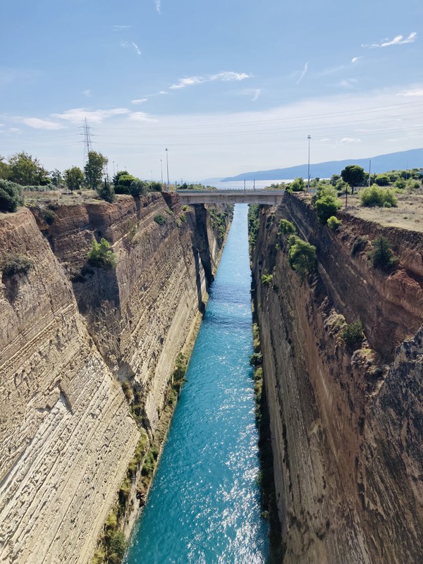 ach einer Woche in Griechenland haben wir Nafplion verlassen und uns wieder auf den Weg nach Athen gemacht. Am frühen Mittag legten wir einen Zwischenhalt in Korinth ein, bei dem wir unter anderem den Apollon-Tempel mit seinen monolithischen Säulen, die Startrinne des Stadions und die Überreste einer antiken Toilettenanlage bewundern konnten. Kurz darauf konnten wir noch einen Blick auf den beeindruckenden Kanal von Korinth werfen. Am Nachmittag kamen wir in Athen an. Nachdem wir unser Gepäck im Hotel verstaut hatten, begaben wir uns zum Archäologischen Nationalmuseum und verbrachten einige Stunden damit, die vielfältigen Schätze darin zu betrachten. Einige Highlights waren die Totenmaske des Agamemnon, der Mechanismus von Antikythera, der Reiter vom Kap Artemision, die Linear B-Täfelchen, die mykenische Krieger-Vase, der Nestor-Becher, die Boxer-Fresken und die Replika der verlorenen Athena Parthenos. Den Abend haben wir mit einem Abendessen mit Blick auf die Akropolis abgerundet.