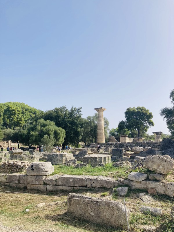 Heute wachten wir unter einem klaren Himmel und einer strahlenden Sonne in Olympia auf. Den Morgen verbrachten wir auf der Ausgrabungsstätte. Wir stellten uns fantasievoll die Statue des Zeus vor, eines der sieben Weltwunder der Antike und hinterfragten die Theorie der Werkstatt des Phidias. Im Stadion führten wir ein Wettrennen durch, gaben alles und ernannten unsere Ὀλυμπιονίκης (Olympiasiegerin). Anschliessend besuchten wir das Museum, wo unter anderem die berühmte Hermes-Statue des Praxiteles war.