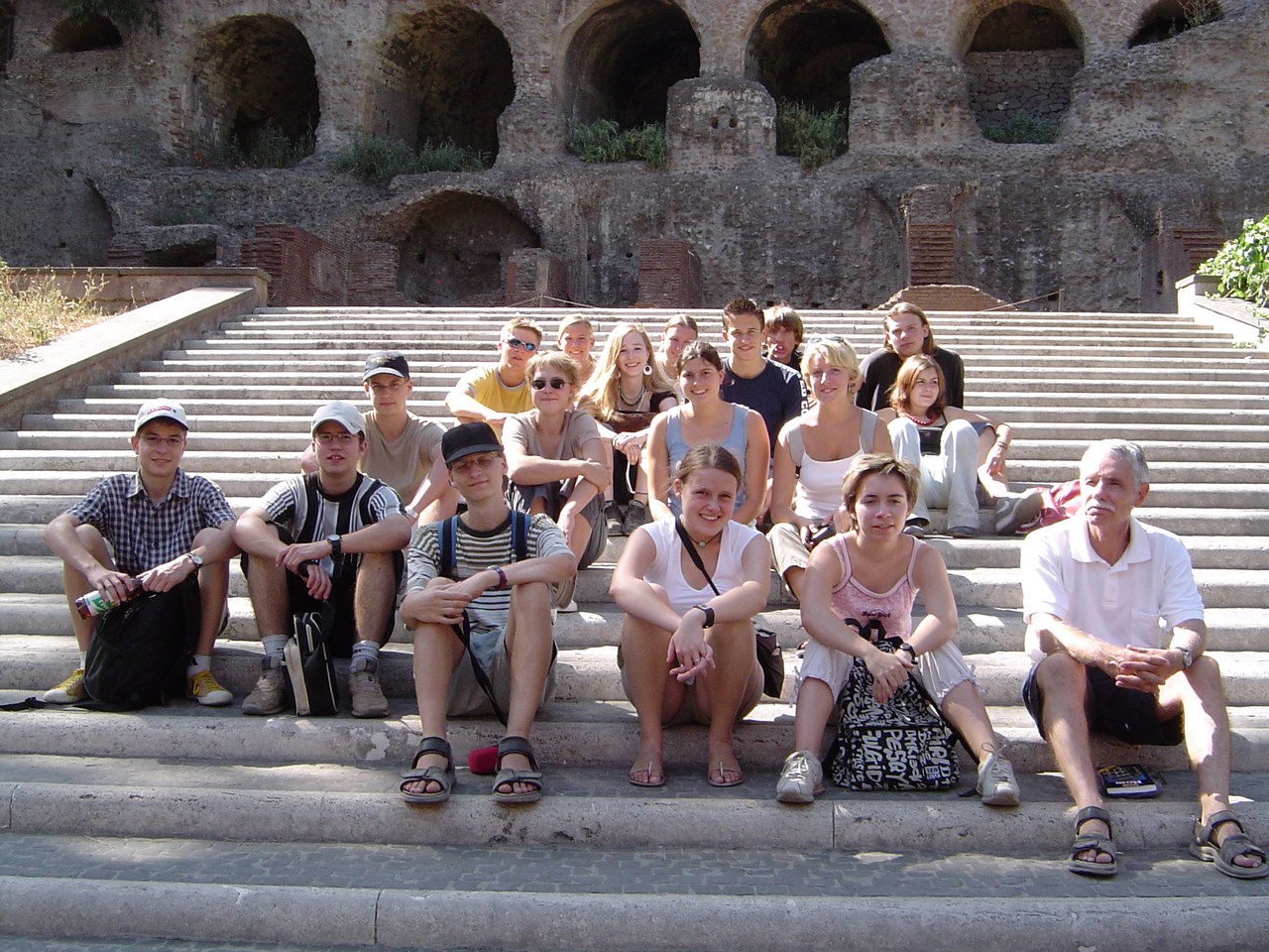 Klasse 4A reiste während einer Woche unter der Leitung von Herrn Dr. F. Schmidlin und Dr. E. Krieger nach Rom. Im Zentrum stand die alte Geschichte dieser Stadt und ihre kulturelle Ausstrahlung auf Europa und die Welt. Vorgängig bereiteten sich die Schülerinnen und Schüler anhand von Studienarbeiten auf die Reise vor und führten die Reisegruppe vor Ort kompetent durch die antiken und neuzeitlichen Sehenswürdigkeiten. Nebst kulturellen Erlebnissen genoss die Klasse die warmen Sommerabende auf den wunderschönen Plätzen und an den zahlreichen Brunnen und erfrischte sich dabei an den unübertrefflichen italienischen Gelati-Kreationen. Auch Badeausflüge nach Ostia zum nunmehr recht sauberen Badestrand gehörten zum Freizeitprogramm. Nach einer gelungenen Studienwoche kehrte die Reisegruppe voller Eindrücke nach Basel zurück, nachdem die meisten am Trevibrunnen den Vorsatz gefasst hatten, eines Tages erneut die Ewige Stadt zu besuchen.