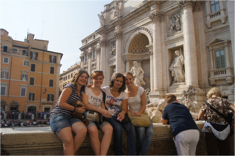 Vom Flughafen ging es weiter zum Zug, und dann zum Hotel - einem Hospiz, das von polnischen Nonnen geführt wird. Schnell auspacken und weiter geht's... Patrick stellte den Friedensaltar des Augustus vor, die Ara Pacis (mit einer Pause im kühlen Inneren des Museums um die müden Füsse zu erholen), Céline zeigte uns das Pantheon und schliesslich sprachen Tamara und Lara über den Trevibrunnen (unterbrochen von einem Brautpaar, das von begeisterten Touristen beklatscht wurde).