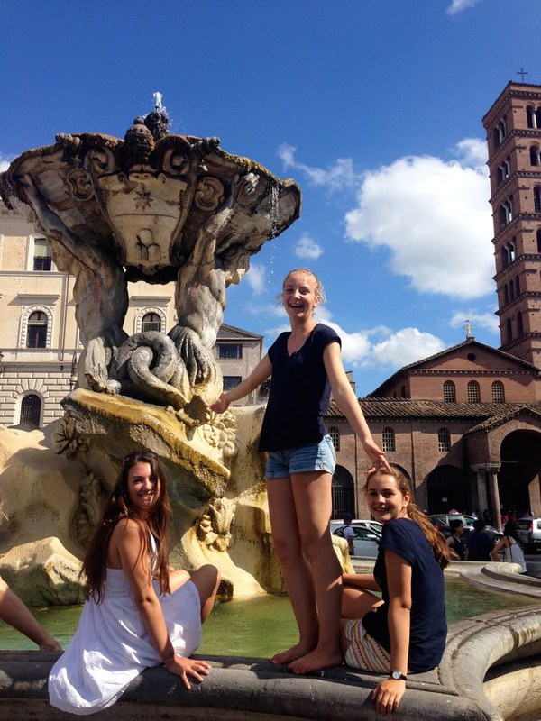 Am Sonntag,  24. August 2014 starteten die Latein-Schwerpunktfächler der 4. Klassen zur Studienreise nach Rom: Drei Jungs und dreizehn Mädchen plus Herr Aerni, Frau Klebs und Frau Wesselmann. Mit leichter Verspätung kamen wir erst gegen acht in unserem Hotel, der Casa Valdese, an, wo uns in perfektem Deutsch der Weg zu einem Restaurant gewiesen wurde, das sich gleich als Volltreffer herausstellte: günstig, nah und sehr gut. Eins fiel uns gleich am Anfang auf: Es ist heiss in Rom. Sehr heiss.