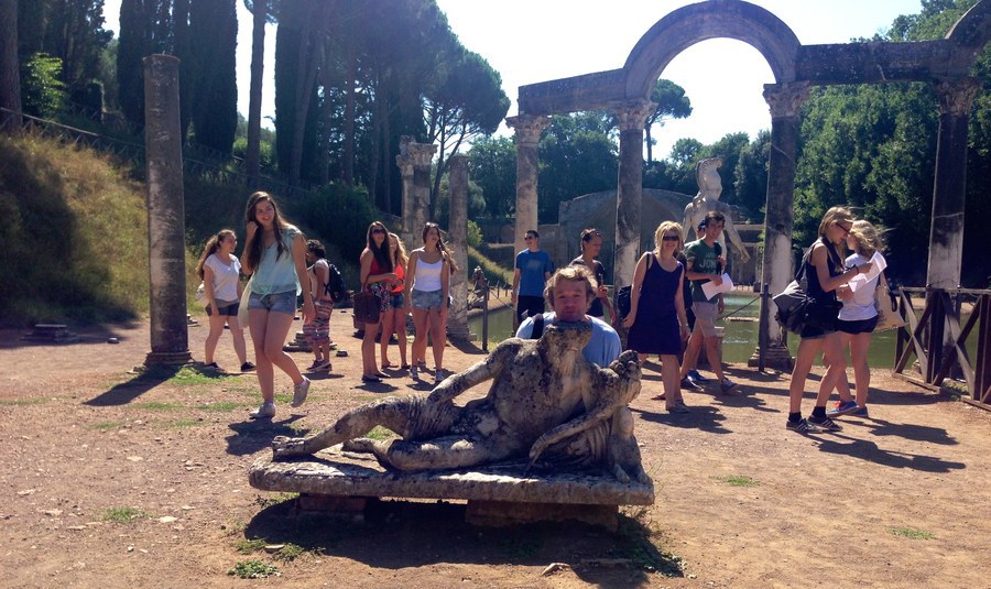 Am Mittwoch wurde es etwas erholsamer. Zuerst durften wir gemütlich Bus fahren; es ging nach Tivoli, wo wir zunächst an der Villa Hadriana Halt machten. Mit grosser Begeisterung erzählten uns Miriam und Leonie von Kaiser Hadrian und seinem Geliebten Antinoos sowie von seiner Begeisterung für künstliche Welten, der Erschaffung des "ältesten Europaparks der Welt", des Kanopos, einer Art luxuriösem Swimmingpool mit ägyptischer, griechischer und römischer Ecke. In "Ägypten" gibt es sogar ein Krokodil!