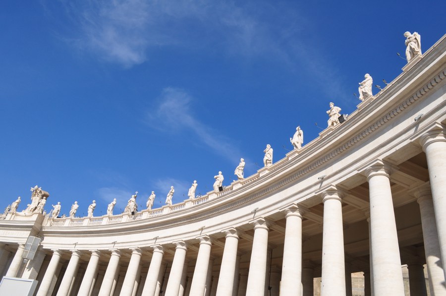 Der Petersdom empfing uns unter knallblauem Himmel in aller Pracht – und die Schlange war erstaunlich kurz. Feragosto halt, die Zeit, wo kein normaler Mensch nach Rom fährt … (wir hatten zwar Glück: der Hotelmanager bezeichnete die 31 Grad als Kältewelle und versicherte uns, dass man im August eigentlich mit 40–45 Grad zu rechnen habe!). Gloria hielt hier ihren Vortrag; sie zeigte uns diverse Kunstwerke im Innern der gewaltigen Kathedrale, vor allem die Pietà von Michelangelo und den Baldachin von Bernini.