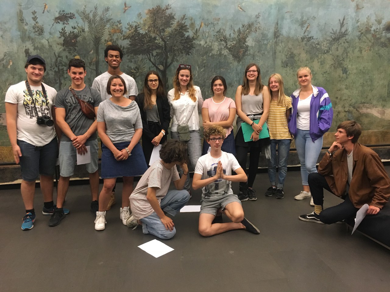 Den Vormittag verbrachten wir in den beeindruckenden Caracallathermen mit Arzies Referat, Turnübun­gen und einem Hasen. Es kam die interessante – und sehr grundsätzliche – Frage auf, wie gut man die beeindruckenden Römerbauten eigentlich finden darf, wenn man mitbedenkt, von welch grausamen Tyrannen sie zur Festigung der eigenen Macht gebaut wurden (bei Caracalla eindeu­tig der Fall) und welches Sklavenelend für ihre Fertigstellung nötig war. Man kann das über die Antike hinaus weiterdenken, stellten wir fest, bis zu jedem herrlichen Barockbau, aber auch bis zu unserem heutigen Wohlstand, dessen Ursprünge wir nicht immer hinterfragen … Nach einem kurzen Imbiss nahmen wir einen Bus in etwas ländlichere Gefilde und besichtigten die Katakomben von San Callisto, die. kein. Flucht. ort. waren. keine. Ver. sammlungs. stätte. kein. Gebets. raum. kein. Schwimm. bad. kein Zirkus … jedenfalls waren wir froh, aus diesem Grab von 250'000 Men­schen wieder auftauchen zu können. Ein weiterer voller Tag endete schliesslich mit Stephanies Füh­rung durch den Palazzo Massimo alle Terme, wo uns vor allem die prächtigen Fresken aus dem Haus der Livia beeindruckten.