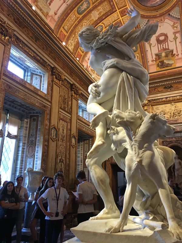 Nur in Rom wird man gleich am Flughafen von einer Gruppe unseriöser Herren in schwarze Limousi­nen verfrachtet und zum Hotel gefahren, und nur in Rom funktioniert das perfekt und ist auch noch billiger als der offizielle Flughafenexpress … fing also gut an und ging gut weiter. Unsere erste Station war die Galleria Borghese, wo uns Shane zum ersten Mal mit den atemberaubenden Skulpturen von Gianlorenzo Bernini bekannt machte, der die antiken Mythen von Persephone, Daphne und Apollon zu neuem Leben erweckt hat. Diesem Künstler sollten wir die folgenden Tage noch oft begegnen.