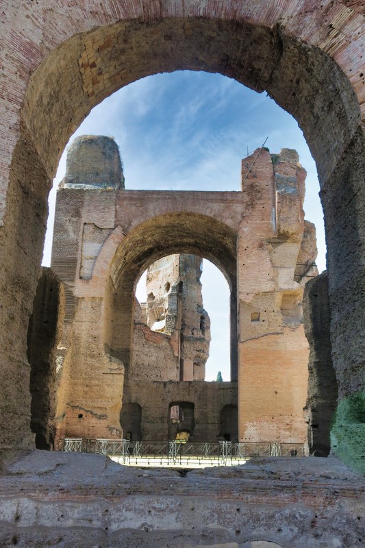 In der Talsenke des Mons Aventinus und des Mons Palatinus liegt der 600 Meter lange Circus Maximus. An dessen Ende steigen wir bei der Bus-Station ‘Circo Massimo’ aus und spazieren zu den gewaltigen Ruinen der Caracalla-Thermen. Anja stellte in einem umfassenden Bericht die anfangs des dritten Jahrhunderts errichteten Thermen mit interessanten Details vor. Welche Infrastruktur war vorausgesetzt, wenn an einem Tag zehn Tonnen Brennholz benötigt wurde, um Wasser und Luft der Thermen aufzuheizen? Wie sahen die Öfen aus? Wo standen die Wälder? Woher kam diese Unmenge an Wasser? Welche Räume wurden beheizt? Wie gross waren diese und wie waren sie ausgestattet? Welche Zwecke hatten die verschiedenen riesigen Hallen? Wer war eigentlich der Architekt? Wer hat dafür gesorgt, dass alles funktioniert? Warum gingen die Leute überhaupt hin? Welchen Einfluss hatte der Kaiser? Fragen über Fragen, auf die Anja in geordneter Darstellung klärende Antworten gab.
