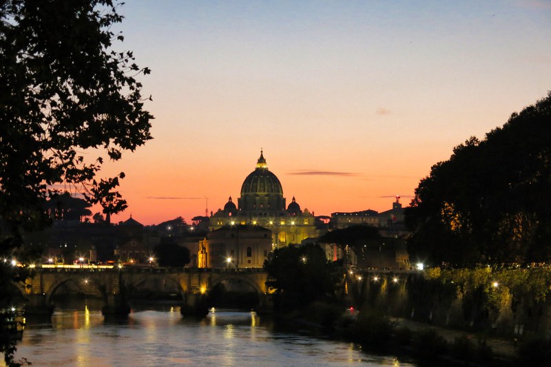 In die Peterskirche hinein kommt man seit drei, vier Jahren nur durch eine Sicherheitskontrolle vom Petersplatz her. Ist man dann mal in der Kirche drin, weiss man kaum, wohin man sich wenden und was man genauer betrachten möchte. Maxie hat ein paar Anhaltspunkte erwähnt. Zweifellos ist die Pietà von Michelangelo einer eingehenderen Ansicht wert, aber auch die unzähligen Gemälde und Statuen an den Wänden oder der Baldachin, der Papstaltar – oder Michelangelos Kuppel, bei der man die Orientierung an der Kuppel des Pantheons sogleich wiedererkennt. Auch nach stundenlangem Aufenthalt im Petersdom würde man nicht fertig mit neuen Entdeckungen. Wir haben uns – dem Programm von Herrn Külling gemäss – für einen individuellen Schluss entschieden und den restlichen Nachmittag für persönliche Interessen genutzt. Und abends wartete der Cantautore bereits zum zweiten Mal.