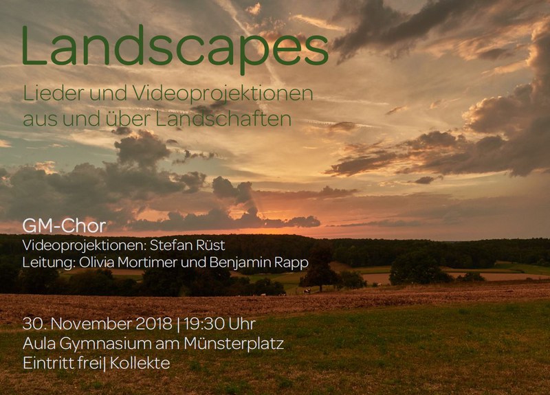 Am Freitag, 30. November 2018 führte der GM-Chor unter der Leitung von O. Mortimer und B. Rapp und in Zusammenarbeit mit S. Rüst sein diesjähriges Projekt auf. Das wunderbare Konzert in der voll besetzten Aula des Gymnasiums am Münsterplatz hat die Zuhörenden verzaubert. Die Collage aus Liedern mit Videoprojektionen zum Thema "Landscapes" wurde auf hohem musikalischem Niveau in reiner Intonation und in ansprechender Dynamik engagiert vorgetragen und riss das Publikum mit. Mit grosser Freude konnten wir feststellen, dass der GM-Chor in den vergangenen Jahren nicht nur an Grösse stark zugelegt , sondern auch eine bemerkenswerte qualitative Entwicklung durchgemacht hat. Dies war möglich durch die allzeit motivierende und engagierte Leitung Ihrer Musiklehrpersonen Olivia Mortimer und Benjamin Rapp. Ihnen Sei hier ganz herzlich für ihren Einsatz gedankt.
