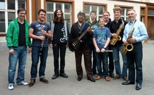 Am Freitag, den 30. März waren auch im Gymnasium am Münsterplatz zwei Bluesprofis aus Chicago zu Gast, welche im Rahmen des Bluesfestivals Basel in der Stadt waren. Mit beeindruckendem Können, perfektem Groove und wirklich unglaublich viel Freude an der Musik injizierten Sammy Burckhardt und Jimmy Johnson uns ihre Begeisterung für den Blues. Es ist wirklich unglaublich, was ein Musiker auch zwischenmenschlich erreichen kann. War der Leadgitarrist Johnson zu Anfang noch der Inbegriff des coolen Musikers aus den Staaten, kam er doch mit jedem zusammen gespielten Stück mehr aus sich raus und ging wirklich auf jeden einzelnen ein und gab Ratschläge, wie man das eigene Spiel verbessern könne. Jammen mit so tollen Musikern und zu sehen, dass auch das ein normaler, wenn auch sicher grossartiger Job ist, ist ein tolle Motivation, sich des eigenen Instruments vielleicht doch mal wieder etwas beherzter anzunehmen. An dieser Stelle auch nochmal ein riesiges Dankeschön an Herrn Hänggi, der dieses lehrreiche und spassvolle Treffen möglich gemacht hat.