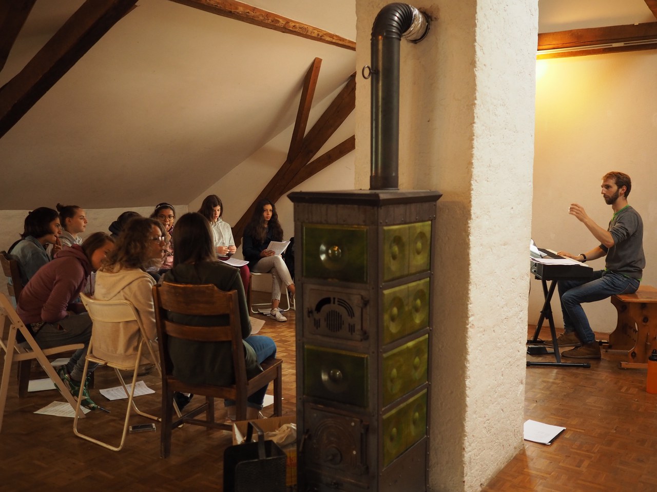 Vom 26. bis zum 30. September 2016 fuhren die Jazzband und der Chor des GM in ein gemeinsames Musiklager nach Le Bémont (JU). Beide Ensembles widmeten sich eine Woche lang der intensiven Probenarbeit. Während die Jazzband sich unter der Leitung von Michael Pfeuti im Tischtennis-Raum der Jugendherberge einrichtete und diese täglich mit ihren Arrangements beschallte, probte der Chor mit Olivia Mortimer und Benjamin Rapp im benachbarten Saignelégier die Stücke für das bevorstehende Konzert vom 9. Dezember 2016 (Aula Gymnasium am Münsterplatz, 19:30 Uhr).