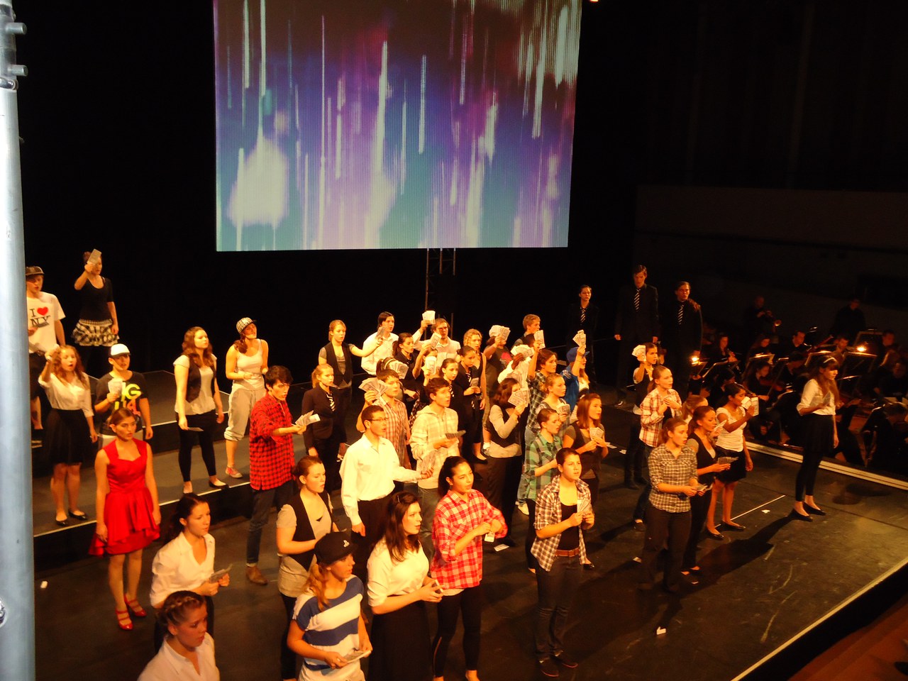 Die 100 Mitwirkenden haben in aufwändiger Probenarbeit, während Intensivwochen und auch neben dem regulären Schulunterricht, alles dafür getan, dass das Publikum im Foyer des Theater Basel einen eindrücklichen Abend erleben konnte. Das Projekt war ein voller Erfolg – begeistertes Publikum an beiden Aufführungsabenden, unzählige glückliche Gesichter, lang anhaltender Applaus.