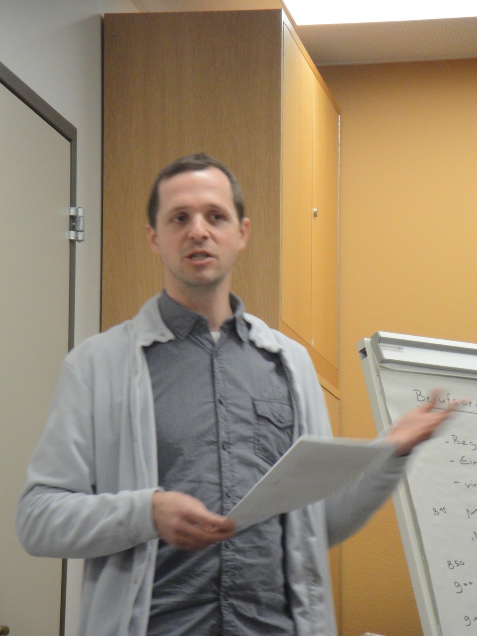 Der Pflegeleiter Stefan Krummenacher empfing uns. Er arbeitet schon seit 8 Jahren in der KIS und macht seit einigen Jahren solche „PR-Veranstaltungen“. Nach einem gemütlichen Einstieg begann das wirkliche Programm. Das Gebäude bzw. die vierte Etage des Unispitals, also die KIS, wurde uns vorgestellt, in dem Sinn, dass er erläuterte, in welche Räume die Etage eingeteilt ist und wie der Tagesablauf ungefähr aussieht. Danach präsentierte Herrr Krummenacher ein Mindmap mit den wichtigsten Fakten über die KIS. Anschliessend schaute eine Ärztin bei uns vorbei. Sie stellte uns ihren Beruf und die Ausbildung vor und erzählte vor allem, dass man den Beruf als Psychiaterin wirklich wollen müsse, weil es manchmal schwierig sei, sich von den Fällen abzugrenzen. Man müsse auch sebst zum Psychiater gehen und regelmässig eine Supervision machen, wo man von den schlimmen Fällen erzählen kann. Da darf man dann die sonst geltende Schweigepflicht brechen, weil der Supervisor ebenfalls einer Schweigepflicht unterliegt. Als Abschluss bekamen wir einen Flyer zum Beruf Pflegefachfrau/-mann und konnten Fragen stellen. So viel zum Ablauf.