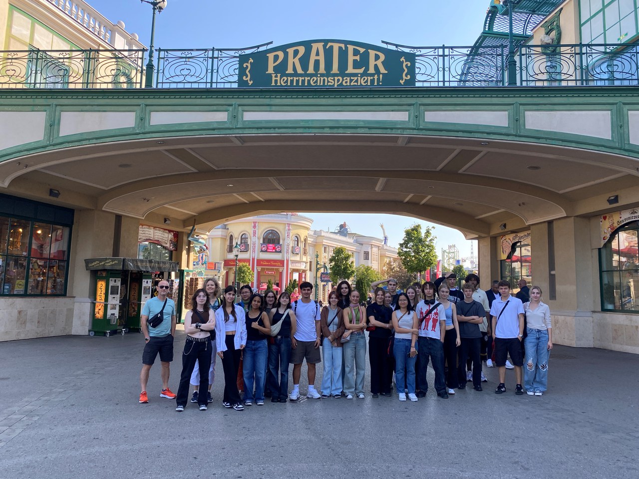 Nach unserem Besuch im Schulhaus haben wir uns zusammen auf den Weg zum berühmten Wiener Prater gemacht. Dort angekommen konnten wir es kaum erwarten mit dem historischen Riesenrad zu fahren. Die Aussicht aus der Gondel war super und man konnte zum ersten Mal die schiere Grösse der Stadt erahnen. Wieder unten angekommen, wurden wir in den Mittag entlassen und durften uns frei auf dem Prater bewegen.