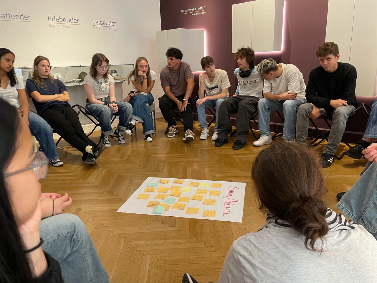 Die Führung im Viktor-Frankl-Zentrum begann mit einem Input über Frankl und seine Geschichte, der ein Konzentrationslager überlebt und diese Erfahrungen in verschiedenen Büchern verarbeitete. Danach mussten wir selbst grübeln und alle anwesenden Personen mussten aufschreiben, was einem im Leben einen Sinn gibt und was keinen Sinn im Leben hat. Anschliessend hat man diese Notizen vor der Klasse kurz vorgestellt. Dies regte einem zum Nachdenken an und so überdachte man, was einem im Leben wirklich wichtig ist. Im Anschluss begann die Führung durch das Museum, bei der wir Geschichten über Schicksale von Menschen lesen mussten und wie diese mit ihrem Schicksal umgegangen sind und wie Ihnen dabei geholfen wurde.