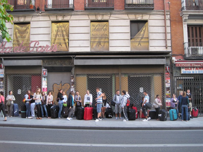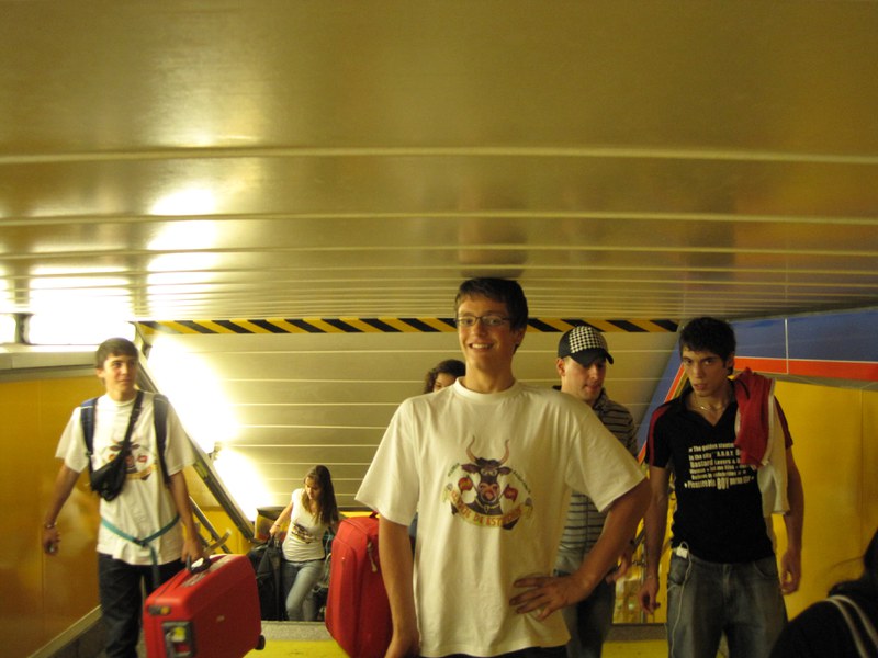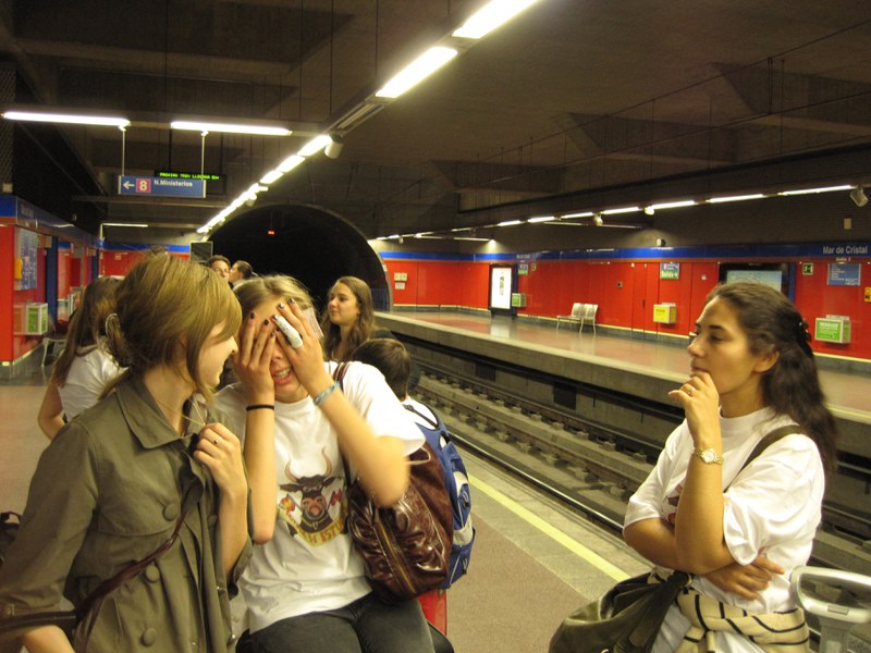 Wie abgemacht sind alle um 15:45 Uhr pünktlich vor dem Eingang/ Ausgang erschienen. Alle waren glücklich aber gleichzeitig auch müde und etwas traurig. Dann fuhren wir wieder zurück zum Hostal Matute, kauften uns was Kleines zu Abendessen (wieder Mal bocadillos ...), nahmen unsere Koffer und machten uns auf dem Weg zum Flughafen. Der Weg zum Flughafen war etwas mühsam, da wir oft umsteigen mussten und nur wenig Platz hatten in der Metro. Wir kamen pünktlich um 18:15 Uhr zum Check In an. Alle kamen mit dem Gewicht der Koffer durch, ausser Esperanza (Señora Domínguez), die ein paar Kilos zu viel dabei hatte, da sie noch mehr Einkäufe als wir gemacht hatte.