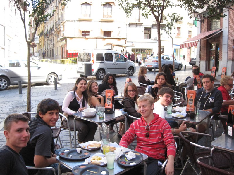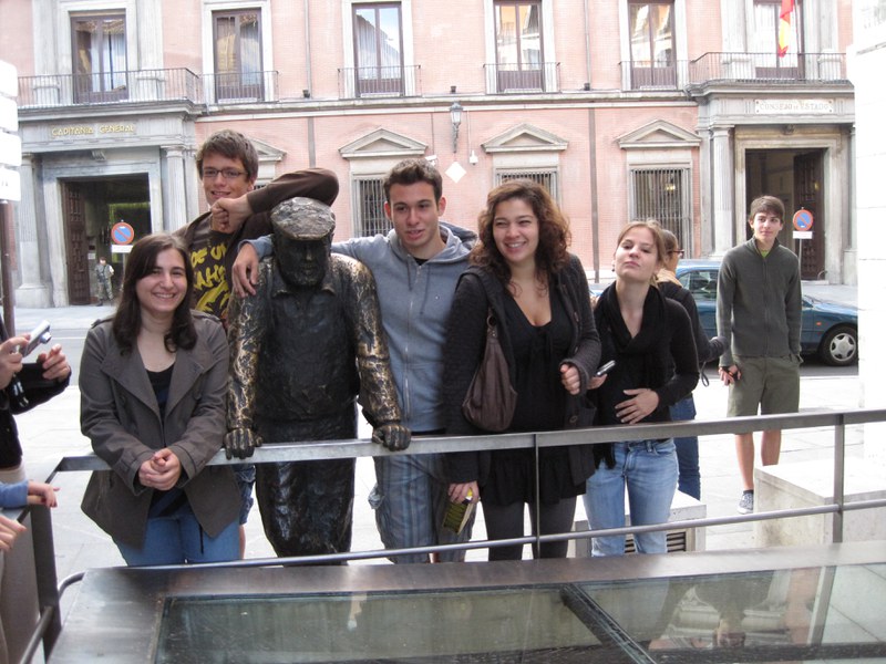 Nachdem wir in der Hauptstadt Spaniens gefrühstückt hatten, machten wir uns auf den Weg in Richtung „Gran Vía“. Wir schlenderten diese breite Strasse mit vielen luxuriösen Geschäften entlang bis zur „Plaza de España“. Unterwegs erzählte uns Fabian interessante Hintergrundinformationen über die „Gran Vía“ wie auch über „La Plaza de España“. Danach wurden wir von einem freundlichen Herrn durch das „El Teatro Real de Madrid“ geführt, nachdem wir zuvor gespannt den Vortrag von Benjamin und Julie gehört hatten . Während unserer Besichtigung wurden wir bis zu den Sitzplätzen geführt und konnten einen Blick auf die Bühne erhaschen, auf welcher ein neues Stück geprobt wurde. Sara führte uns mit ihrem Vortrag durch das Zentrum Madrids und brachte uns das „Madrid histórico” näher. Das Mittagessen konnte wieder jeder nach seinem Geschmack auswählen; einige assen gemeinsam mit Herrn Larghi und Esperanza, andere verpflegten sich auf eigene Faust. Die meisten nutzten die Freizeit von etwa 2 Stunden für ein kurzes Shopping. Milena weihte uns anschliessend in die Besonderheiten der „Puerta de Alcalá“ ein. Danach besichtigten wir die „Biblioteca Nacional de Madrid“, die uns auch in ihrer Grösse erstaunte. Am Abend besuchte etwa ein Drittel der Klasse den Match Atlético Madrid – Almería. Die beiden Mannschaften trennten sich 2 – 2, dank einem „lucky punch“ von Almería in der 90 Minute. Nach dem Spiel trafen wir uns alle nochmals in einer Bar nahe der Puerta del Sol und stiessen auf Benjamins Geburtstag an.