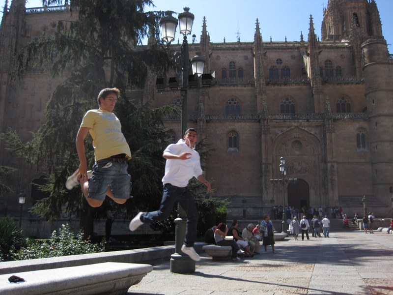 Am Donnerstag fuhren wir mit einem goldigen Autobus nach Salamanca. Während der Fahrt machten wir einen Zwischenhalt in Avila, einem typischen, romantischen Dörflein und bestaunten dort die wunderschön erhaltene mittelalterliche Mauer, die den gesamten Stadtkern umfasst. Während der Weiterfahrt konnten wir durch die Fenster die schöne, vorbeiziehende Landschaft betrachten. Endlich nach einer gefühlten Ewigkeit, etwa zwei Stunden, kamen wir dann, begleitet von einigen Schnarchern, in Salamanca an. Nachdem jeder sein Bett im Hotel gefunden hatte, ging wir dann in der Studentenstadt auf die Suche nach verschiedenen Sehenswürdigkeiten und Informationen.