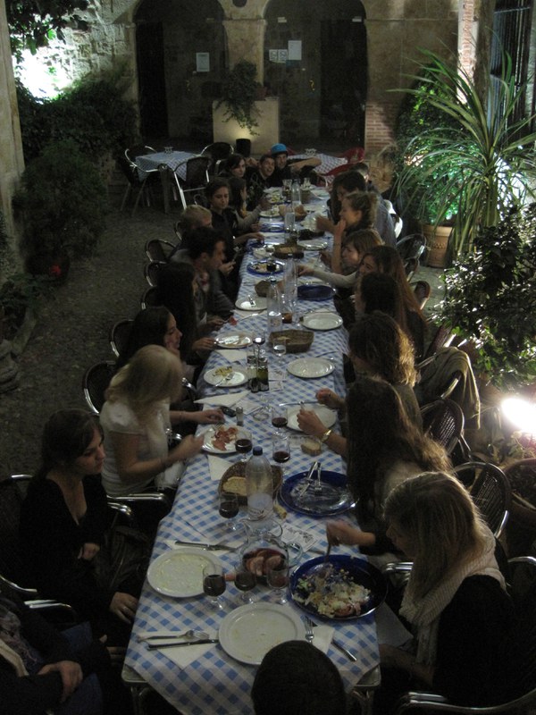 Nach zögerlichem Aufstehen begannen wir den Tag mit einem Besuch des Mercado Central in Salamanca. Wir erhielten die Aufgabe in Zweiergruppen ein Liste mit Produkten zu erstellen und uns zu überlegen, wie sie auf Deutsch heissen bzw. welchen Produkten sie bei uns entsprechen. Der Markt war gespickt mit Fisch- und Fleischständen, der Anblick der mehr oder weniger verarbeiteten Tiere war für einige doch zumindest gewöhnungsbedürftig. Im Anschluss tauschten wir uns mit den anderen Gruppen aus und verglichen die gewonnen Eindrücke. Nächster Programmpunkt war die Besichtigung des “Convento de las Dueñas“, einem wunderschönen Frauenkloster des Ordens der Dominikanerinnen. Herausragend ist die Ausarbeitung der Kapitelle im Kreuzgang des Klosters und die relativ nüchterne Bauweise im Vergleich zum „Convento de los Dominicos“, der gleich nebenan liegt. Die “Conventos“ sind heilige Orte der katholischen Kirche in Salamanca. Nach der Besichtigung kauften wir „Amarguillas“, berühmte Süssigkeiten, welche nur im Convento de las Dueñas von den Nonnen verkauft werden.